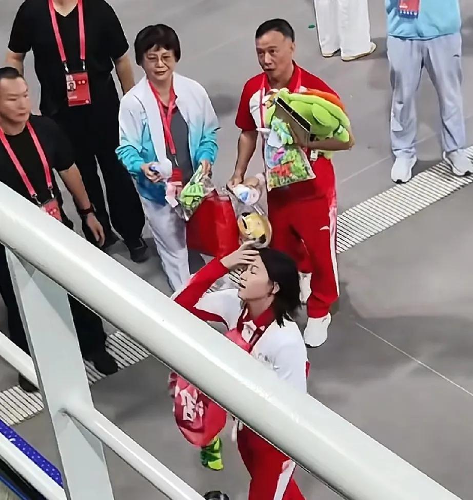 这一幕让人看哭了!! 全红婵再现水花消失术,双人夺冠后,现场再次下起了娃娃雨,不出意外的,全红婵又捡了一堆乌龟。 而她的教练组就满脸宠溺的跟在旁边帮忙拿娃娃,最后实在拿不过来,还用块布给兜着,只有他们知道时隔半年,全红婵首次复出之路太难了。 一边养伤一边训练,每天还要测十几次体重,不是斤也不是公斤,而是按克量,稍有变化就得加大训练。 而全红婵的身体发育太快了,大骨架摆在那,她就注定瘦不下来,首秀选的还都是10米台,着实让人捏了把汗,好在一切苦尽甘来,全红婵只是比不过从前的自己,就算胖了,她内里依然还是法拉利!