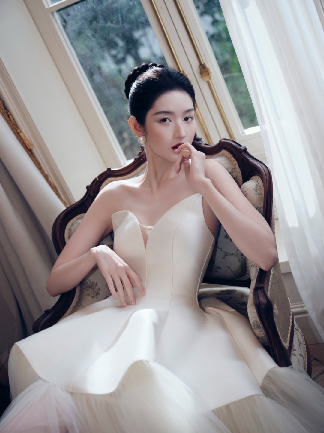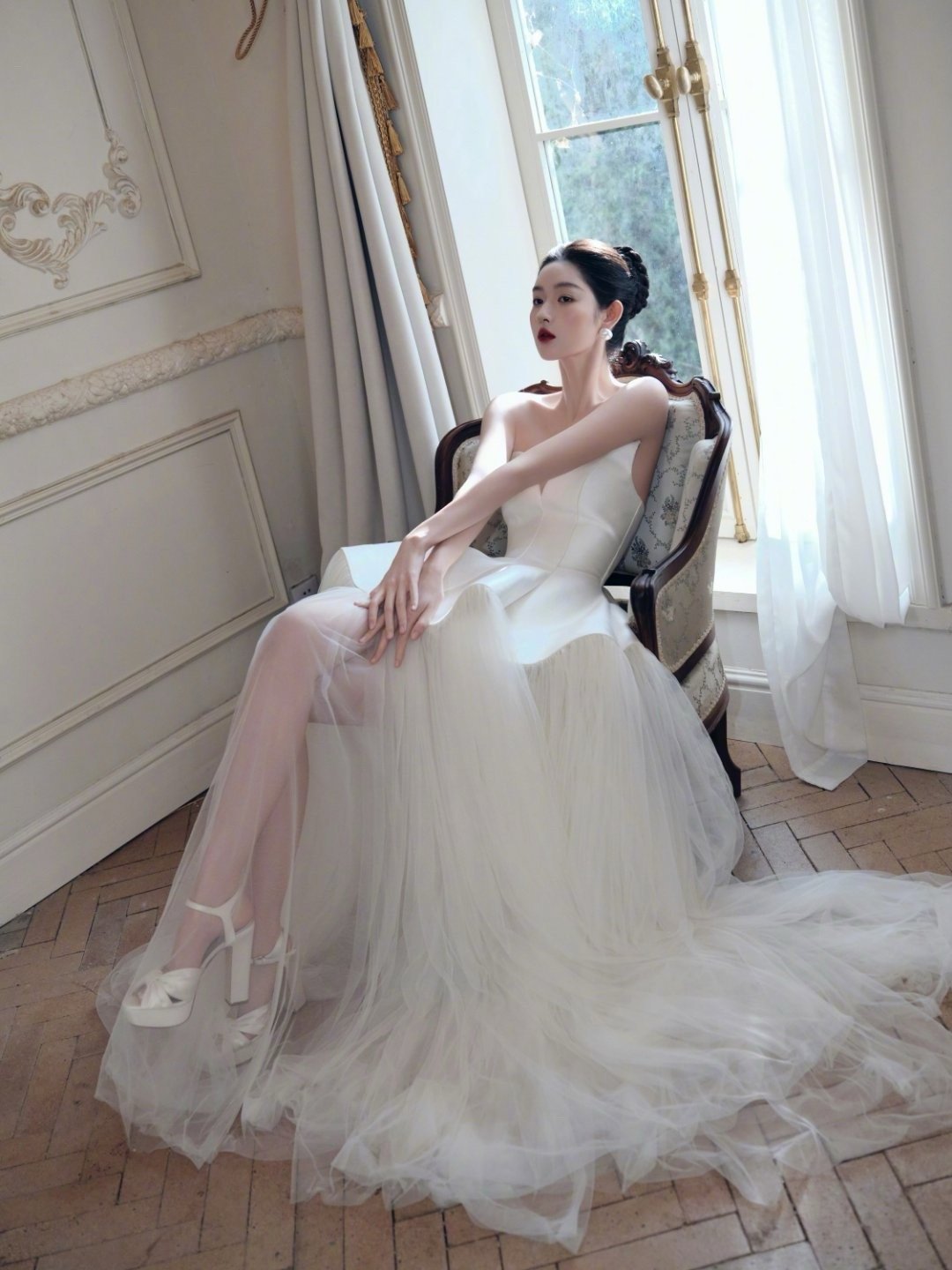 王玉雯复古红唇这组造型真的很“王玉雯”——不喧哗,自有声。红唇不抢戏,白纱不寡淡,珍珠耳饰点睛,盘发利落又不失柔美,整体呈现出一种低调却不容忽视的华丽感。