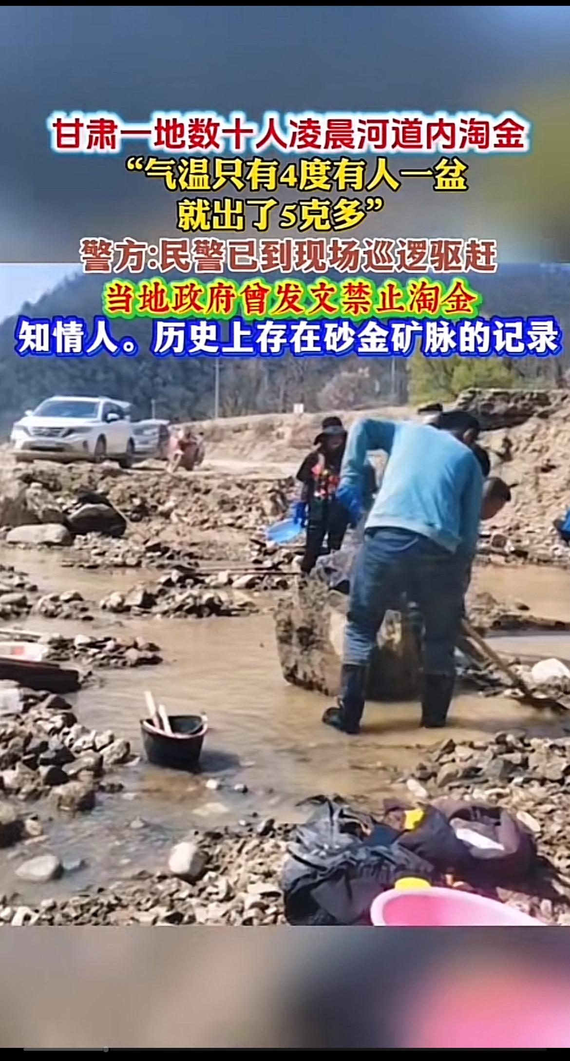 最近甘肃陇南康县的淘金事件挺火。11月2日网友发视频,凌晨1点气温4℃,河里全是人淘金,有人一盆就出5克多。不过这可是非法行为,康县政府明确禁止个人淘金。 其实今年年初就有这现象,虽被官方叫停,近期河道清理,淘金行为又回潮。燕子河历史上有砂金矿脉,今年金价涨,夏天就很多人来。当地政府和自然资源局多次发公告严禁,6月城关镇还开展打击行动。民警已到现场巡逻驱赶,可后期可能还有人来,相关部门得加强管理啊,非法淘金既破坏生态,又影响施工。