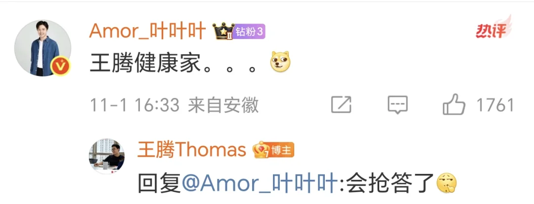 不过其实现在王腾改行也挺不错,未来健康行业肯定是有前途的,只不过现在我确实还没有看出什么眉目?难不成真和网友们猜的一样,王腾健康家?[微笑R][微笑R][微笑R]