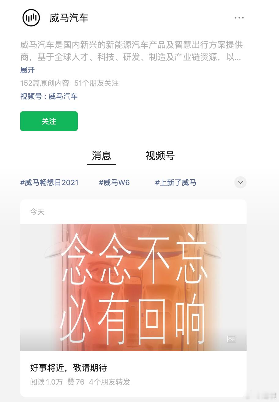威马官宣“好事将近”!这是要复活了?[doge]威马汽车