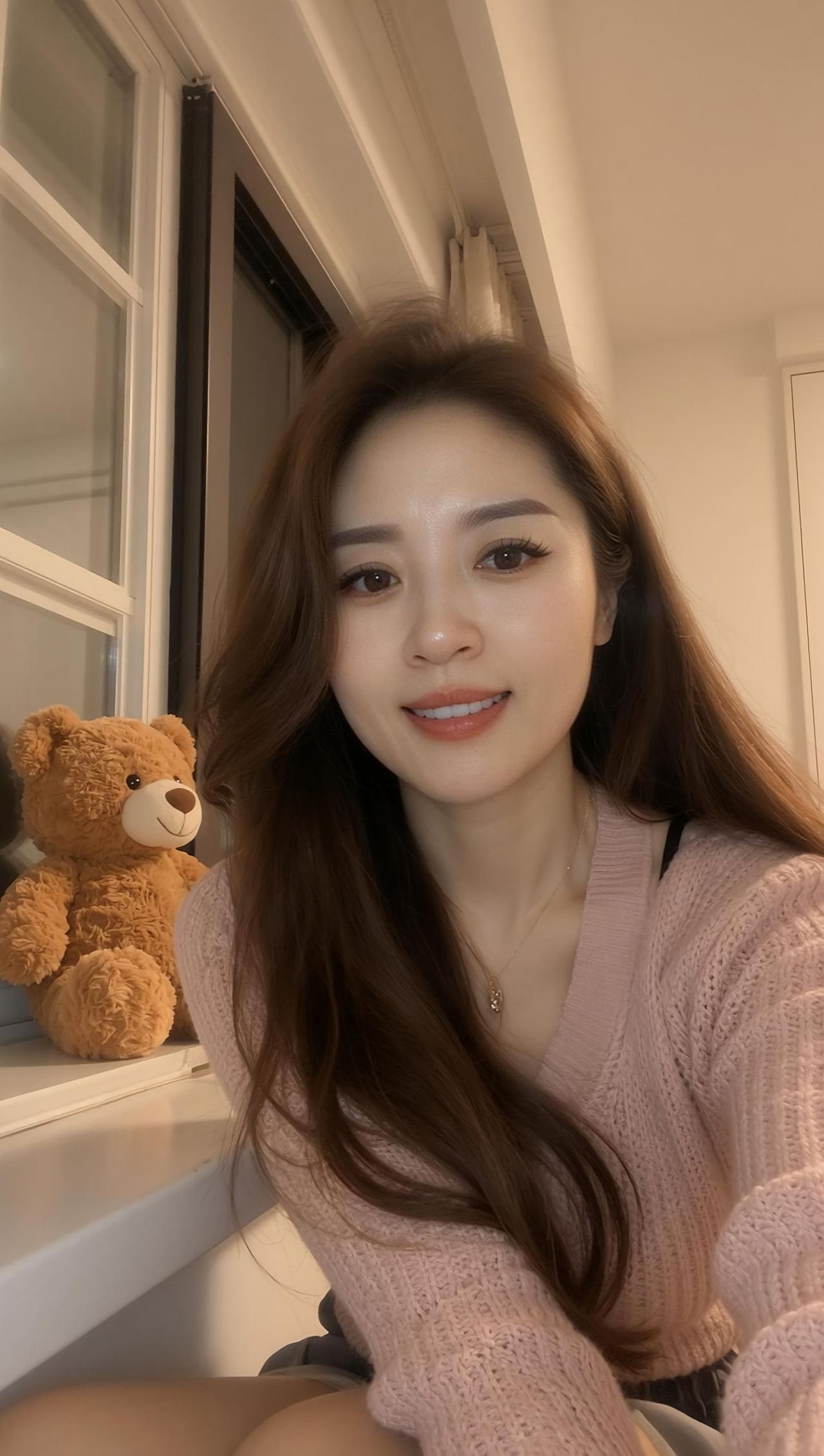 温柔甜美的少女,穿着花色毛衣,散发着温暖气息。