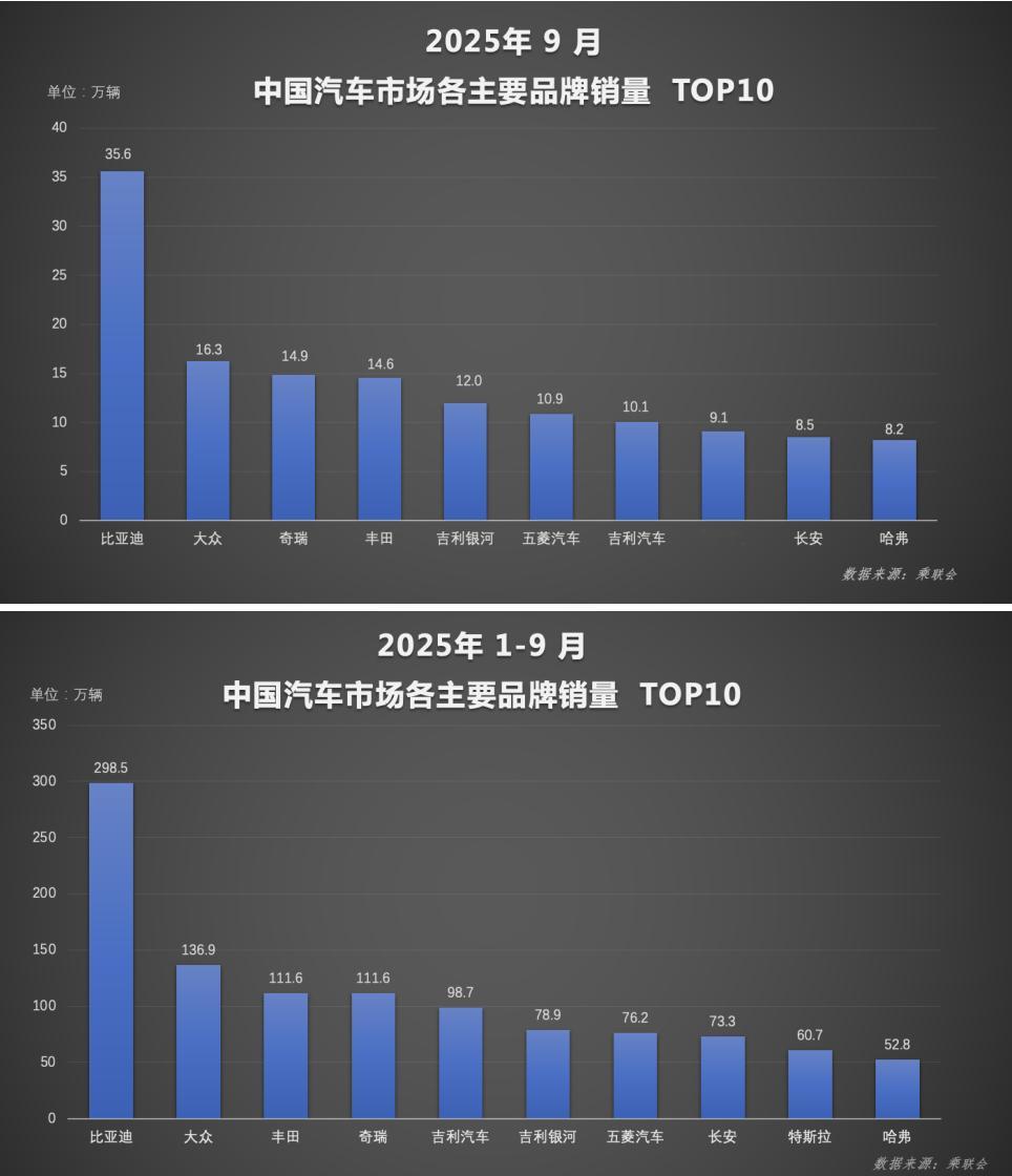 从这几个数据图来看,比亚迪无论是集团整体销量,还是单一品牌表现,均稳居国内新能源车企榜首。海外市场同样亮眼,1–9月累计出口超70万辆,占总销量的22%,市占率在多国也持续稳步上升,宋PLUS、海狮、海鸥等车型在海外也广受欢迎。