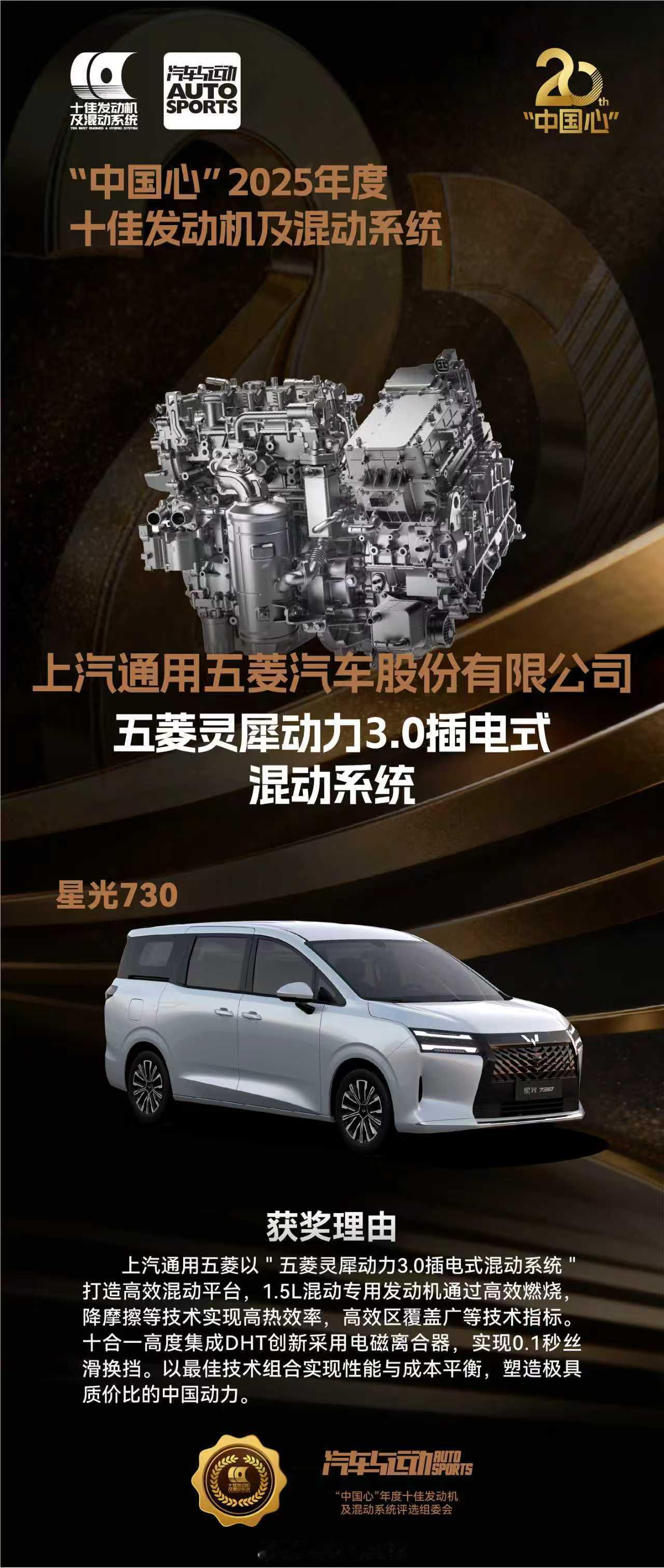 星光730入选中国心十佳动力系统上汽通用五菱第800万辆MPV——星光730正式下线,未上市就先火,订单火速突破1.5万!作为一台“全能舒享大7座”,它搭载的灵犀动力3.0系统不仅开着顺、能耗低,亏电油耗仅5.3L/100km,更一举斩获“中国心十佳”与中汽中心高品质混动双认证。