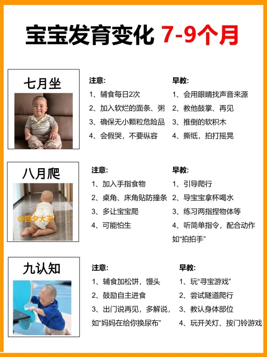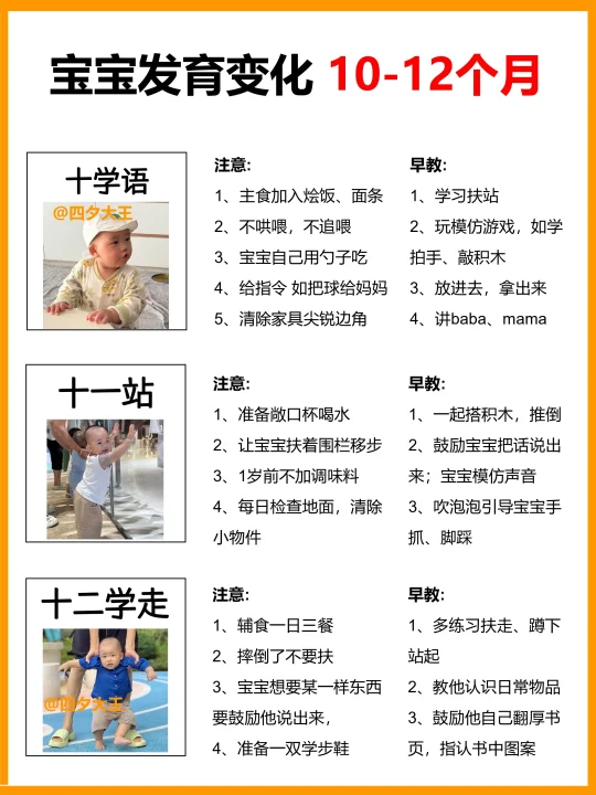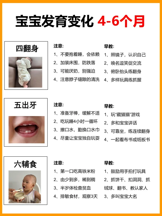 0-12月宝宝生长发育进程!注意事项+早教✔️