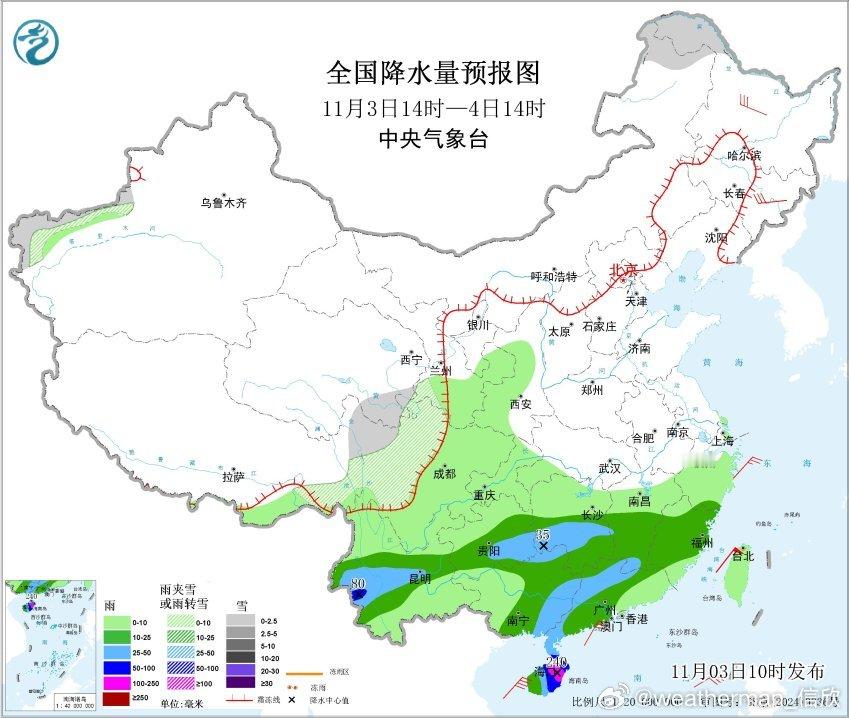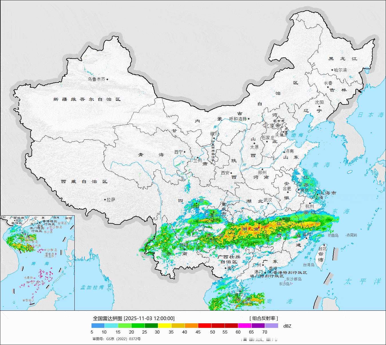 今天下午到明天中午,两支水汽输送带维持,南方继续大范围的阴雨。在海南东部可能有暴雨-大暴雨。南海的部分水汽还会北上,广西东部、广东西部和北部也有可能出现大雨。此外云南西部、贵州东部、广西东北部、湖南中部一带,也可能出现大雨。