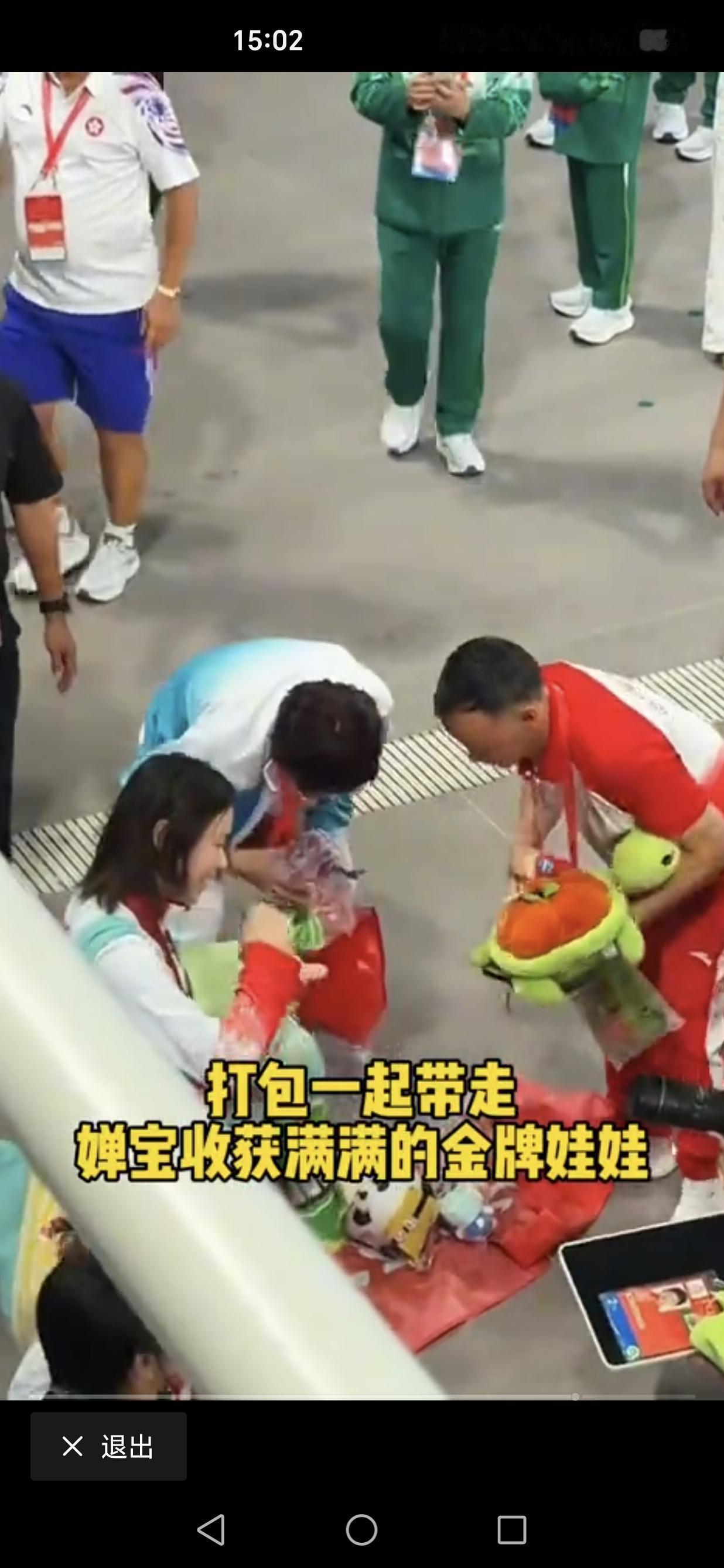 婵宝赛后终于放下紧张,开心起来,笑容满面跑遍全场收公仔收小礼物🎁 看到她满场接“娃娃雨”,活力澎湃的样子,就,真的被感染了,好开心[呲牙] 还有她的“老父亲”何威仪,在旁边帮她捡娃娃,收娃娃……,忙得不亦乐乎 场馆里,围栏边,站得密密麻麻的观众们也好开心啊…… 可能是因为,她是大家看着长大的孩子。 而这个孩子,还特别努力,特别争气!