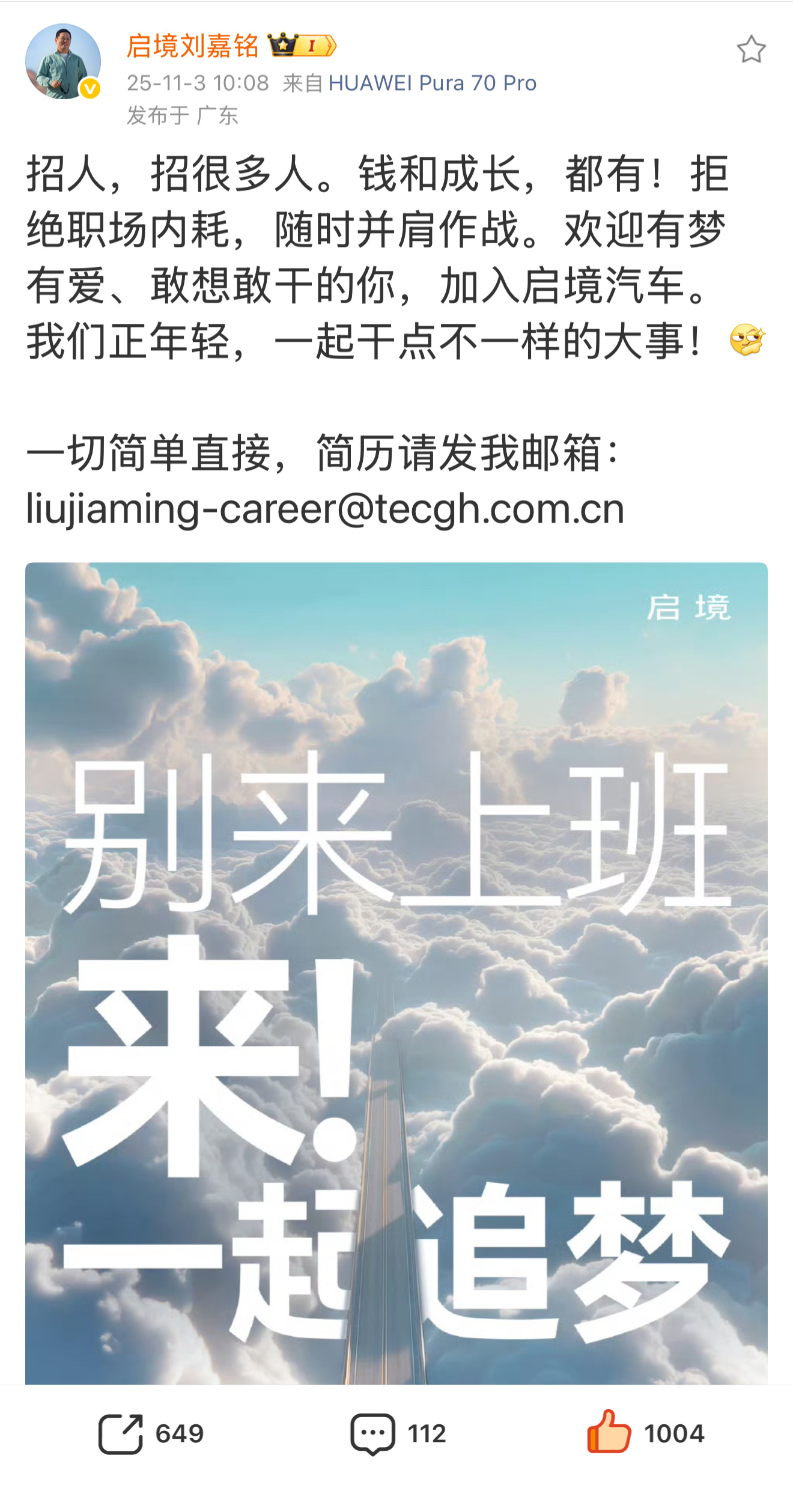 启境刚全新立牌,没有各种山头林立,团队氛围纯粹;此次开放超200个岗位,覆盖研发、设计、营销全链路,发展空间拉满,钱景与成长空间双在线![举手]