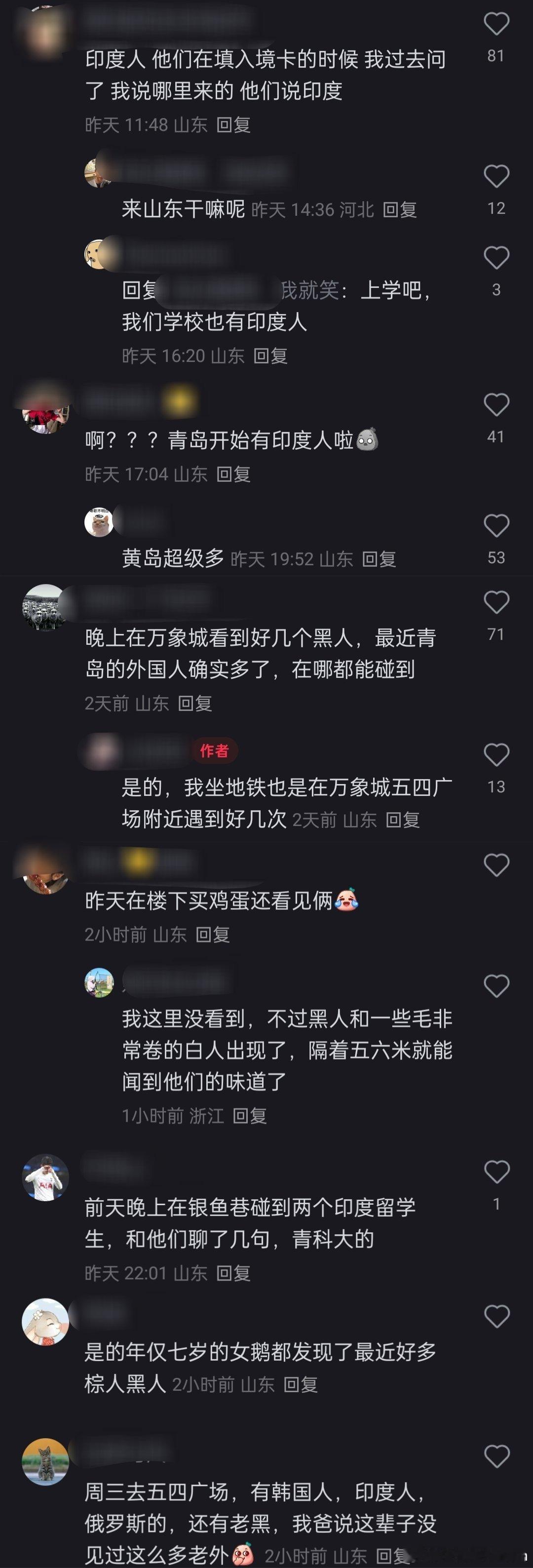 山东青岛地铁上最近为啥有很多印度人?有网友表示在万象城看到好几个黑人,最近青岛外国人确实多了,在哪都能碰到。还有网友在银鱼巷碰到印度留学生,聊了几句。[哆啦A梦吃惊][哆啦A梦吃惊]热点现场
