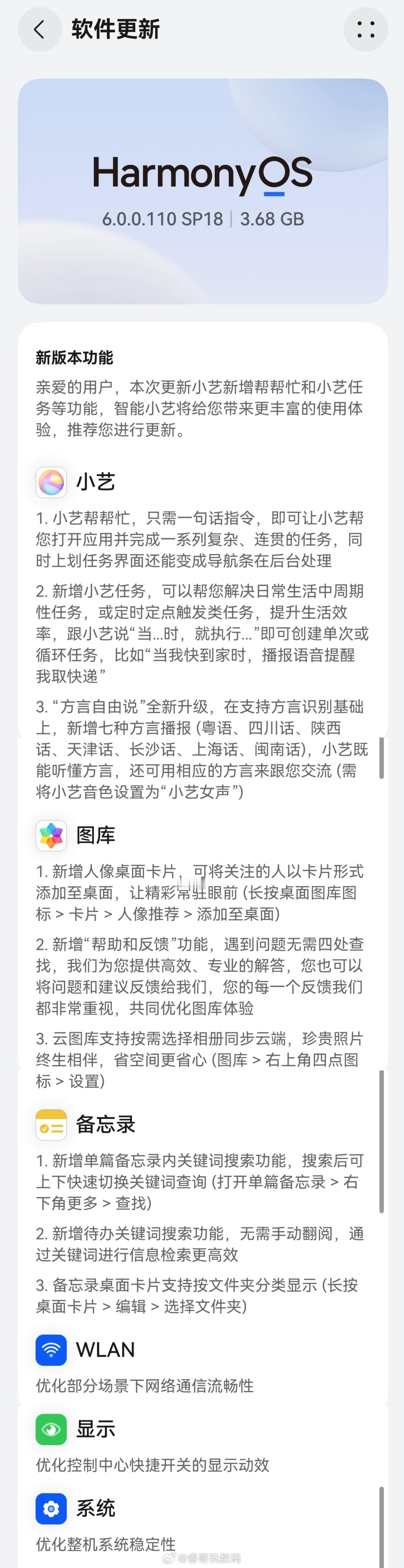 HarmonyOS 6.0.0.110开始向部分机型推送了,看看有没有你需要的功能?
