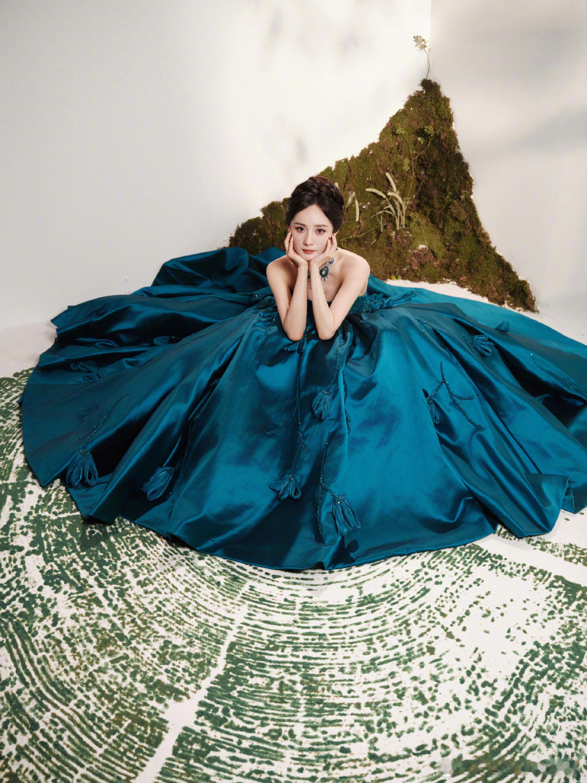 杨幂蓝裙盘发造型,杨幂穿了会生长的裙,是满分生命力的绣绣回来啦,谁能不被这份美貌给惊喜到啊~