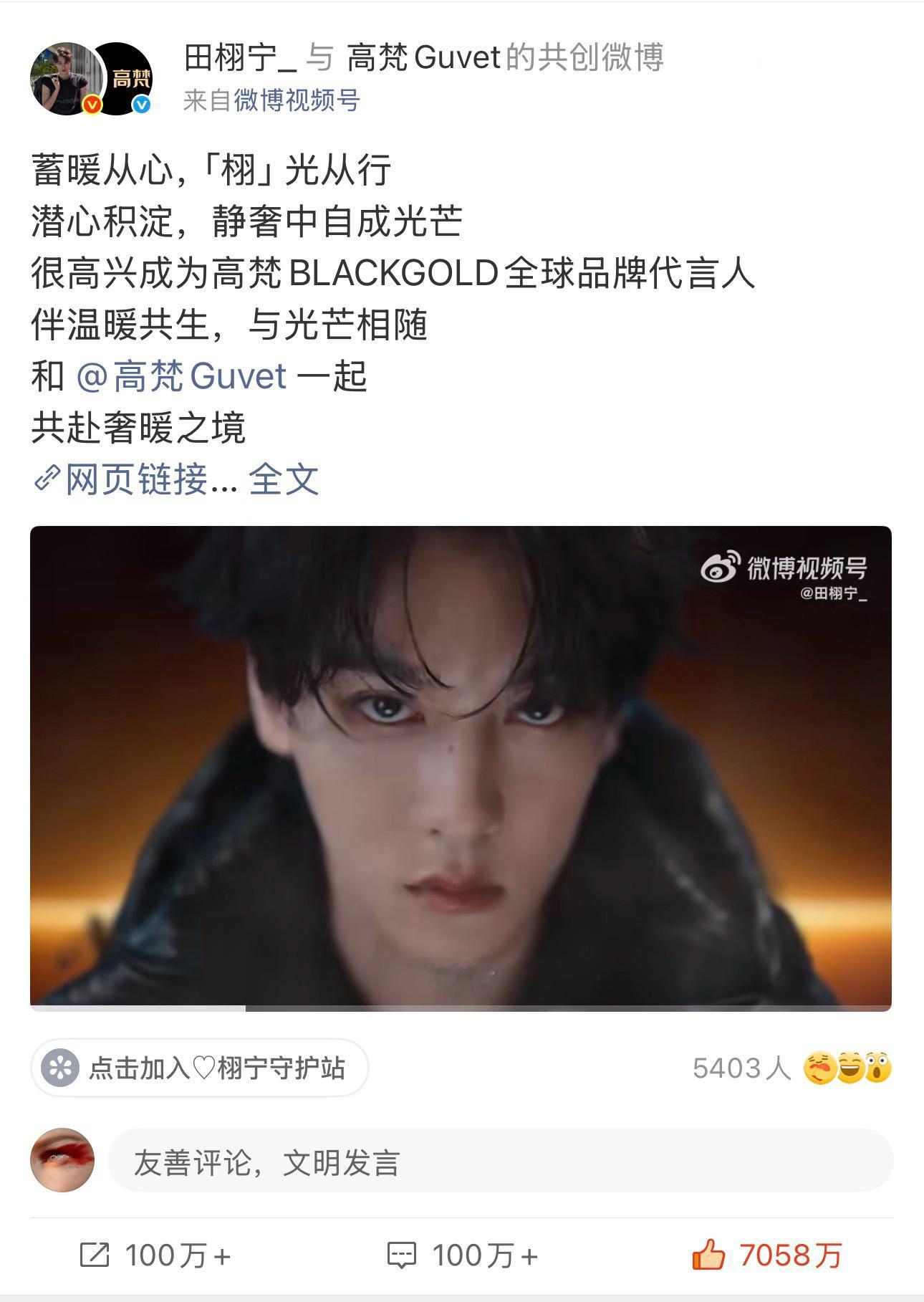 田栩宁 × GUVET 高梵共创博点赞破7000W❗️