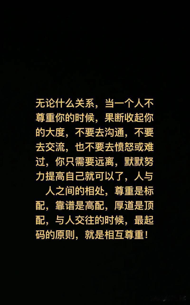 有时候,面对不尊重,你最好的反击就是选择不参与。一些人通过贬低、轻慢别人来彰显自己的优越,而与这样的人纠缠往往只会让你的情绪和能量被浪费掉。真正的强者,不会被这些行为拉入低频率的情绪陷阱,他们选择以智慧和冷静应对。 第一步,你得守住自己的心理边界。学会切断对方带来的情绪供给,不再因对方的行为产生自我否定,同时建立内在的价值锚点,从那些真正爱你的人和自己的成就中寻找肯定。 第二步,用实际行动调整距离。可以减少见面、避免正面冲突,把不必要的互动变得简单乏味,让对方从你的生活中慢慢淡出。明确重塑关系,将对方从“重要人物”变为“普通认识的人”。 第三步,把被消耗的时间转化为自我成长的动力。不管是学习新技能、提升自己,还是拓展交际圈,只要专注于提高自己,你就会越来越强大,吸引志同道合的人。不健康的关系会自然远离,而不尊重的人也将逐渐失去对你的影响。 不必动怒、不必纠缠,也不需要解释,你只需要专注成长,将所有的能量用于自己。那些曾试图伤害你的人会变得无足轻重,而你会用更优秀的自己予以无声的回击。