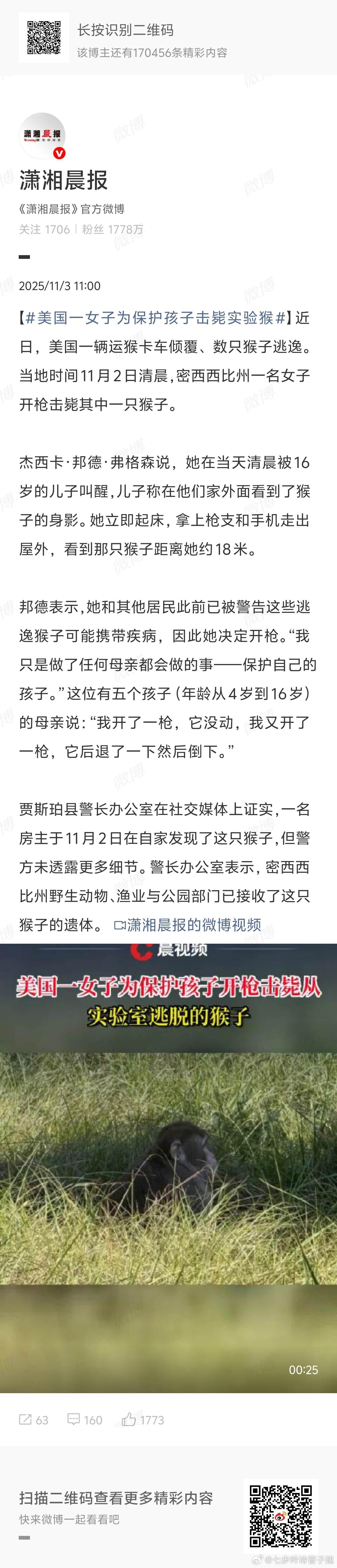 美国一女子为保护孩子击毙实验猴美国人民:我们却不能拿枪保护我们的总统[doge]