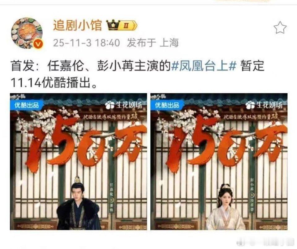 卧槽!任嘉伦 彭小苒《凤凰台上》11.14来!