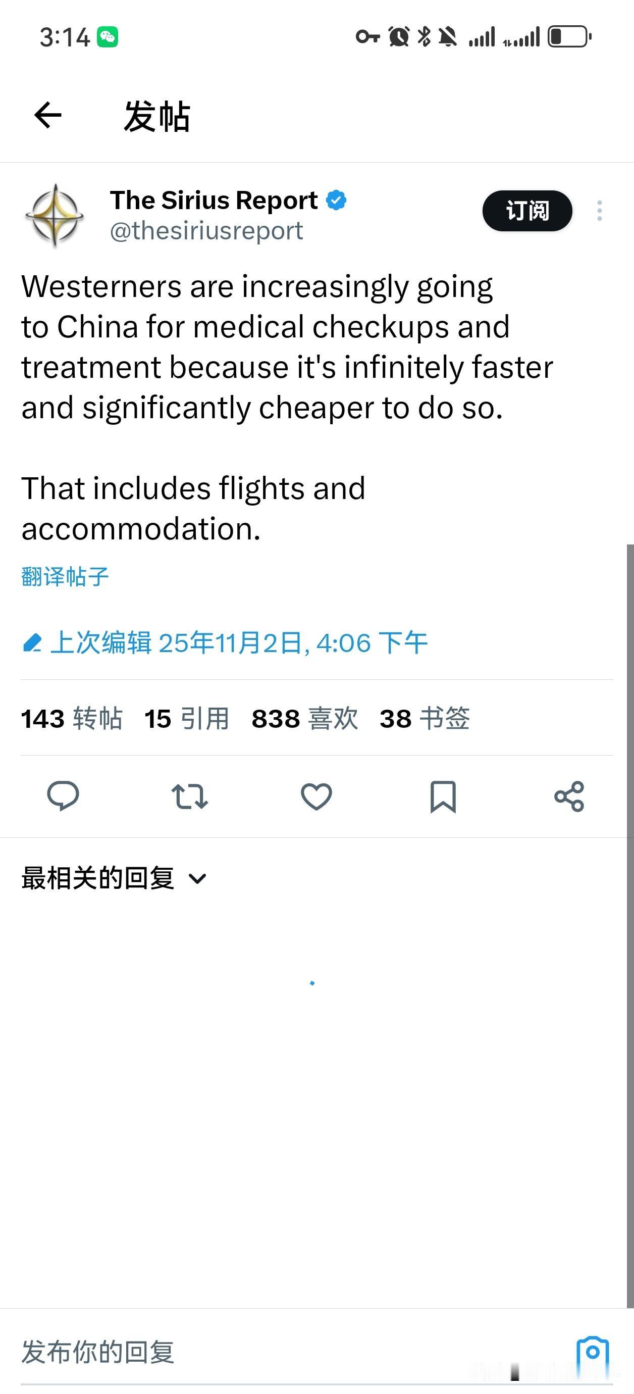 不得不感叹,现在风向都变了么! 越来越多的西方人到中国进行医疗检查和治疗,因为这样做速度快得多,费用也低得多。 这包括机票和住宿。
