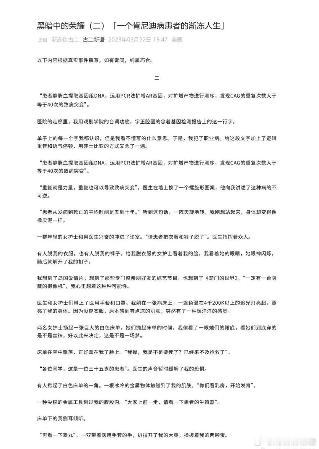 古二渐冻症原来古二根本不是渐冻症患者,他是肯尼迪病患者,这两种病不太一样吧?