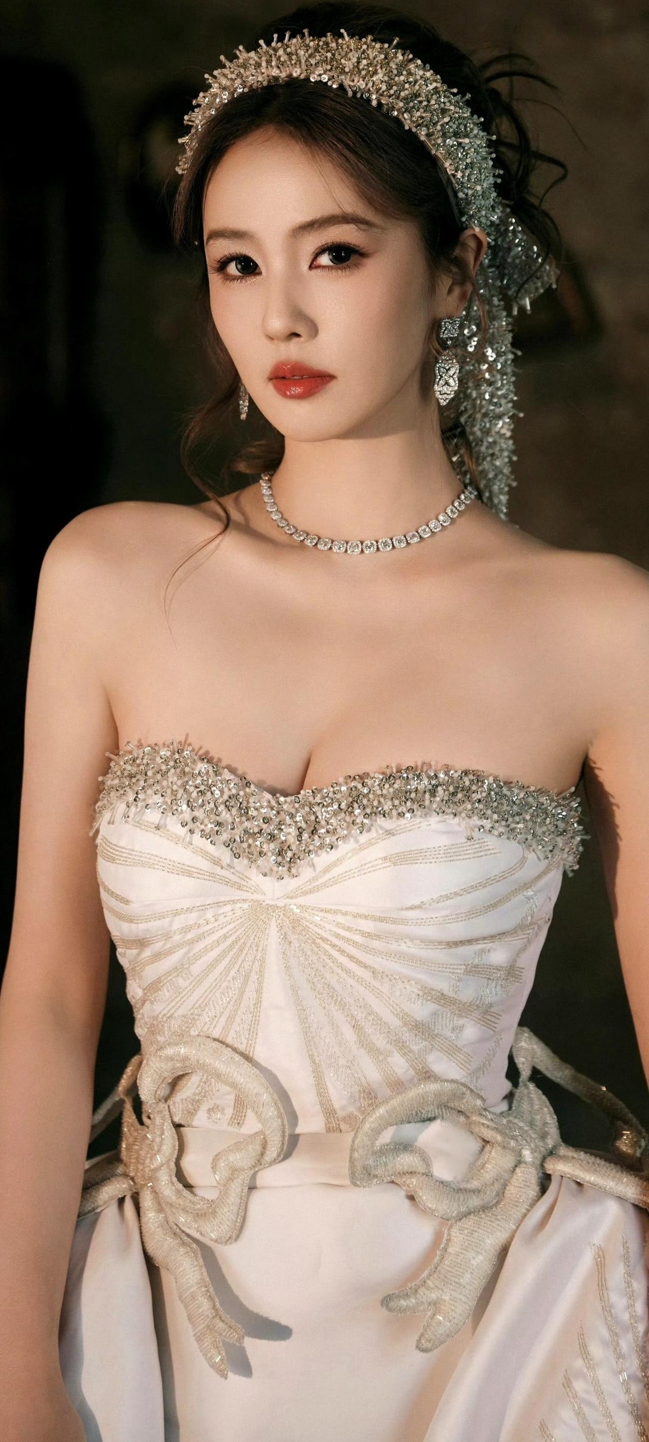 白鹿,优雅的新娘造型,闪耀的珠宝与精致的礼服相得益彰,尽显高贵与美丽。 气质女明星