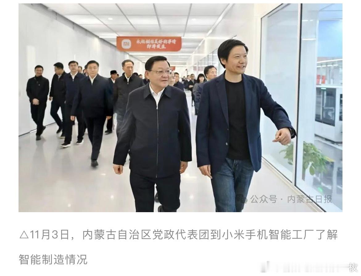 11月3日,内蒙古自治区党政代表团赴京对接京蒙协作工作并学习考察。考察期间,参观了小米手机智能工厂。热点现场