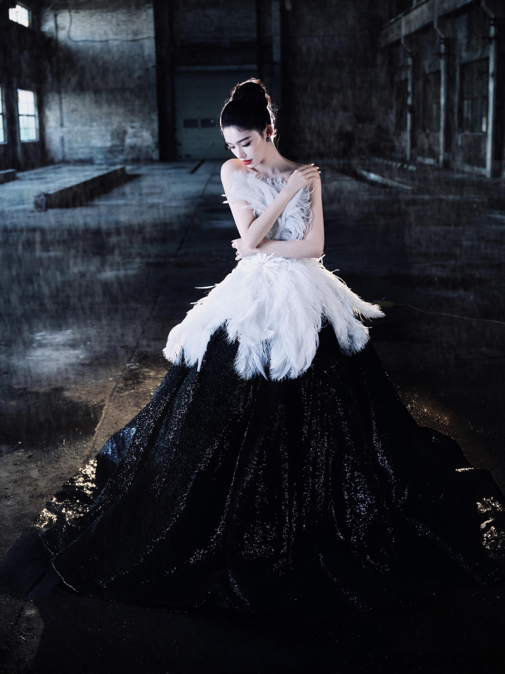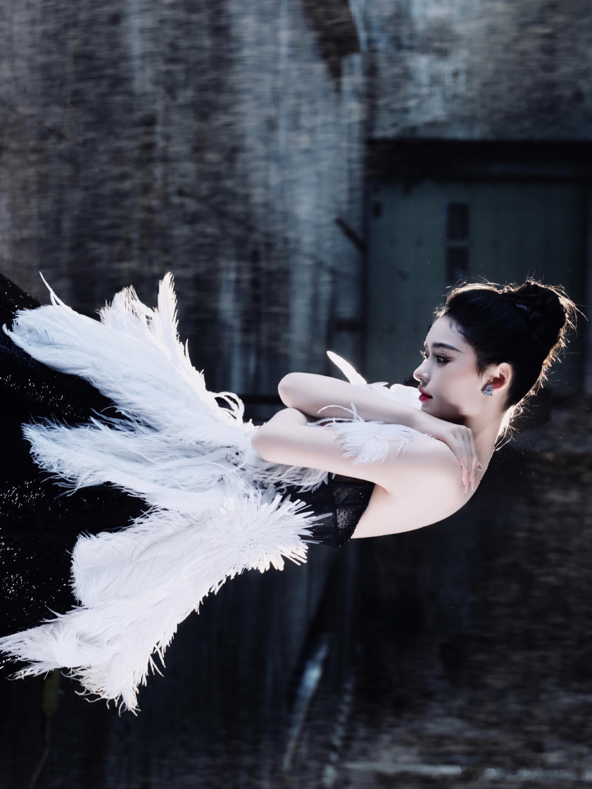 林允cos天鹅之梦 林允“天鹅之梦”造型太绝!白羽毛抹胸撞黑亮片裙摆,复古工业风衬托出优雅与破碎感,建模脸完美诠释虚拟到现实的惊艳蜕变!