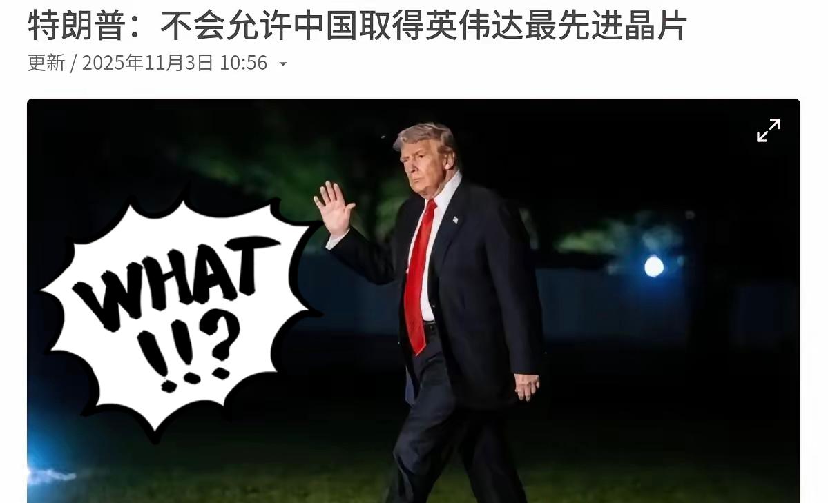 特朗普确定了,这个问题中美没得谈,美国一步都不会让。11月3日,他在哥伦比亚电视台采访中明确表示,不会让任何国家获得Blackwell这类最先进的AI芯片。 特朗普的理由很直白,怕中国赢得AI竞赛,即便不提供,他也承认中国会拥有同等优势。 先说说这颗芯片有多重要。它搭载Blackwell Ultra架构,计算能力和显存都比前代提升50%,单卡288GB显存,能支撑万亿参数模型训练。 这种性能让它成为AI工厂级任务的核心,不管是大模型研发还是科学计算,都离不开它。 英伟达其实很为难,中国市场占其2024年营收的23%,禁售可能让它损失超百亿美元订单。 谷歌、微软更是直接反对,联名致信白宫,担心订单会流向欧洲企业,削弱自身竞争力。 但特朗普政府铁了心要封锁,可他们忘了,芯片制造离不开中国稀土。 芯片封装用的钕铁硼永磁体、抛光材料,都依赖中国稀土,而美国本土加工产能仅占全球3%。 想摆脱依赖没那么容易,新建稀土加工厂至少需要3到5年,短期内根本无法实现替代。 另一边,中国的国产替代也在加速。国内某企业的最新AI芯片,算力已达Blackwell的78%,成本还更低。 这颗国产芯片已经适配了主流大模型,不少科技公司已经开始小批量采购试用。 网友对此讨论热烈,有人说封锁是最好的催化剂,会倒逼国产技术更快突破。 也有人担心短期会影响AI产业增速,毕竟Blackwell的综合性能目前仍有优势。 我认为,特朗普的禁令看似强硬,实则是双刃剑。既伤中国,也会让美国科技企业承压。 从长远来看,技术封锁从来挡不住发展的脚步,反而会让自主创新的动力更足。 未来,中美AI领域的博弈会更激烈,但中国在稀土、市场等方面的优势,会让博弈更具主动权。 或许用不了多久,美国就会发现,单方面的禁令根本解决不了问题,反而会错失更多机会。 文章描述过程、图片都来源于网络,涉及版权或者人物侵权问题,或有事件存疑部分,联系后即刻删除或作出更改