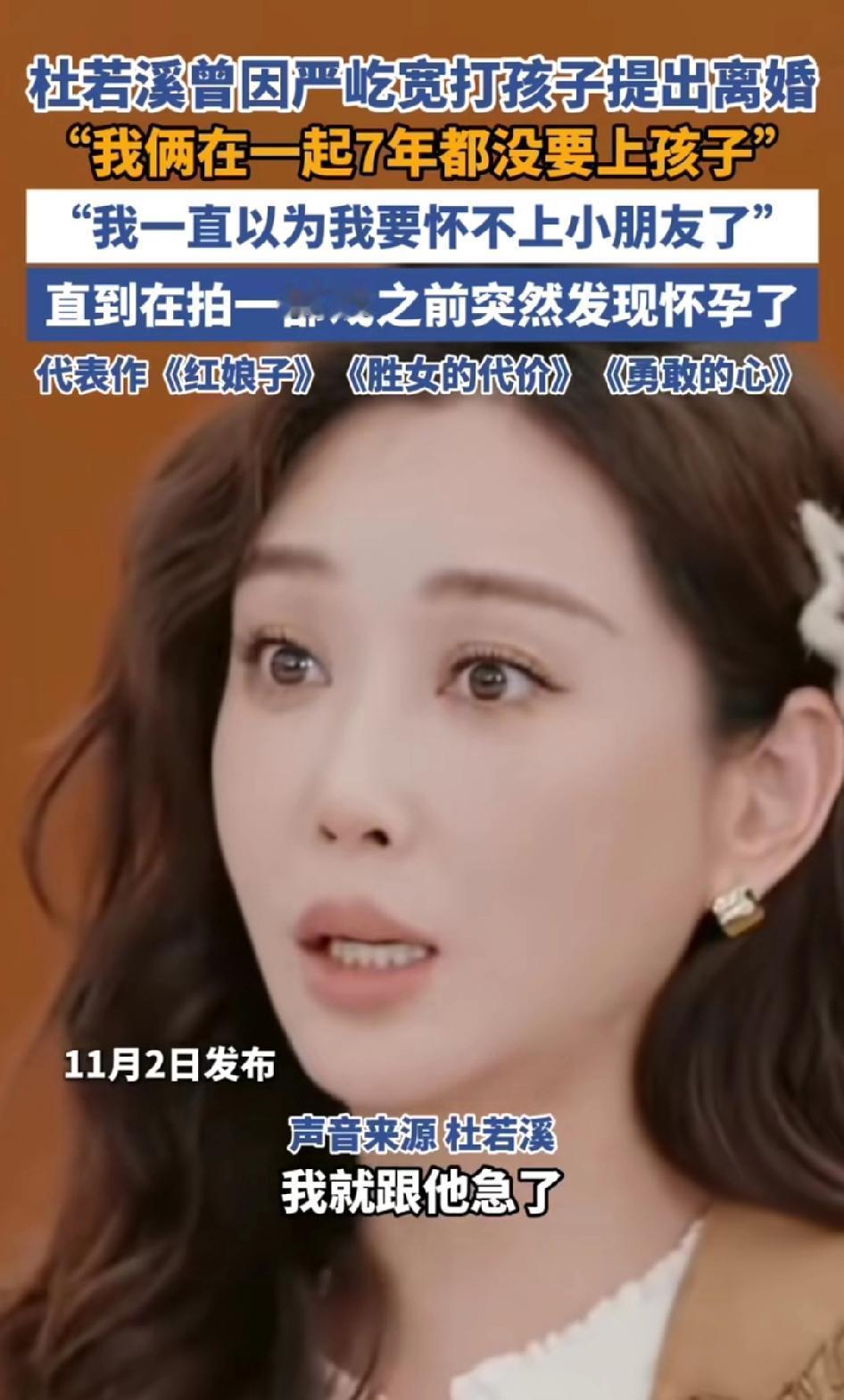 当明星爸妈也为孩子红了眼:有些底线,谁碰都不行 早上刷到杜若溪那段采访,手里剥着的橘子突然就不甜了。她说当年瞧见严屹宽对孩子动了手,心里那根弦“啪”地就断了,连离婚协议都摸出来了。屏幕里她说话时喉结动了动,那股子护崽的狠劲,像极了我家楼下张婶——平时见人就笑,上次孙子被邻居家狗吓着,她抄起扫帚就冲上去,哪管对方是主任还是老板。 当爹当妈的,心里都有块“禁地”。我小时候偷拿家里钱买冰棍,我爸举着鸡毛掸子追到院儿里,我妈直接把我往身后一护,冲着我爸喊:“有话好好说,动孩子一下试试!”后来才知道,我妈那天刚被领导批了,心里正窝火,可瞧见要打我,那点委屈立马就成了护犊子的底气。 网友说“明星家里也一地鸡毛”,可不是嘛。前阵子在商场撞见对夫妻吵架,男的西装笔挺像个老板,急了眼要拽哭闹的孩子,女的抱着孩子就往地上坐,眼泪混着妆水流,嘴里念叨着“你敢碰他一下”。那一刻哪分什么体面不体面,当妈的护孩子,就像老母鸡护崽,翅膀一撑开,管你是豺狼还是虎豹。 杜若溪敢把这话往外说,倒让人觉得实在。谁家过日子没红过脸?拌嘴时摔个碗、说句狠话,转头可能就和好了。但孩子是软肋也是铠甲,你动他一根手指头,当妈的能跟你拼命。老话讲“清官难断家务事”,可在孩子这事上,道理简单得很——再大的火气,也不能往孩子身上撒。 你说是不是这个理?小时候被爸妈护着的瞬间,现在想起来还暖乎乎的吧?