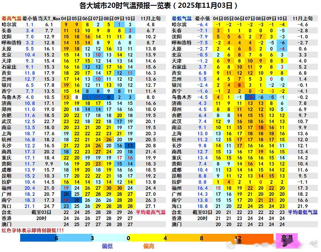 北方地区未来自西向东也会出现降温,气温从偏高转偏低。乌鲁木齐明天最高13℃,后天白天的气温有可能出现倒降,6日最高1℃, 7日最高零下1℃,气温创出立秋后新低,可能是立秋后首次全天低于0℃。长春沈阳,5日最高气温对比10日最高气温,降幅也可能达到10℃。