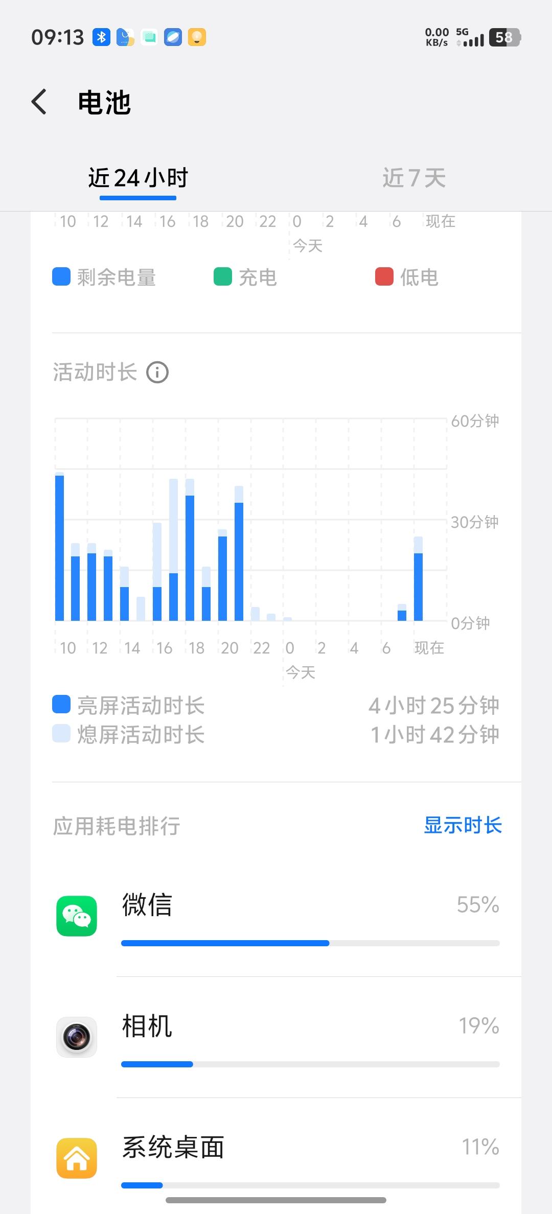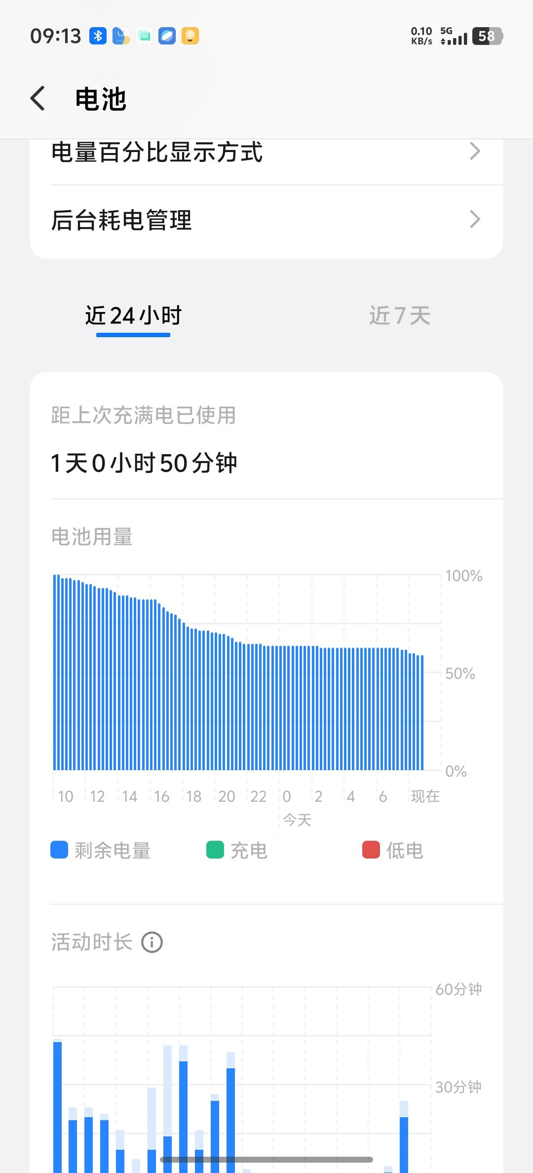 2天一充没压力,iQOO15做到了 昨天充满电开始使用到,目前使用时间24小时50分钟,还剩下57%的电,亮屏时间4小时25分钟,主要是用用微信,拍拍照,刷下资讯什么的。一般人日常也就这些吧,这续航可以的。你们说呢!