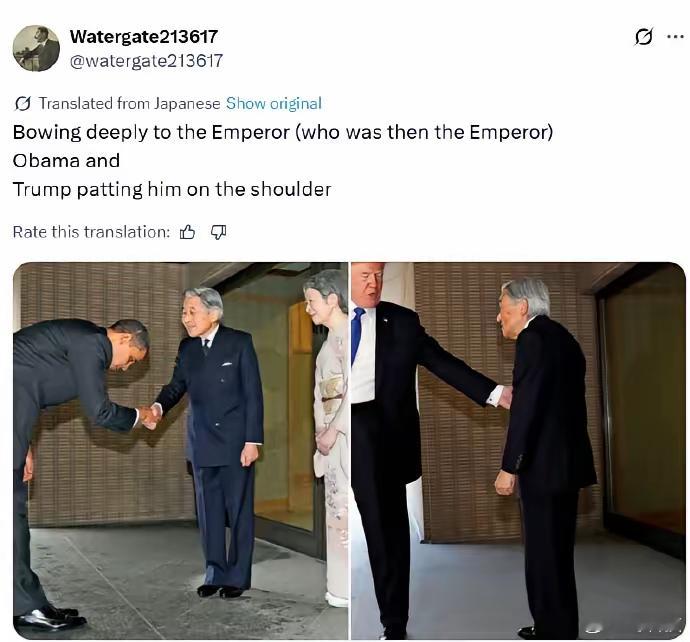 日本网友指责特朗普对天皇行为不如奥巴马,老特也快80了,真要人鞠躬也是难为他了。