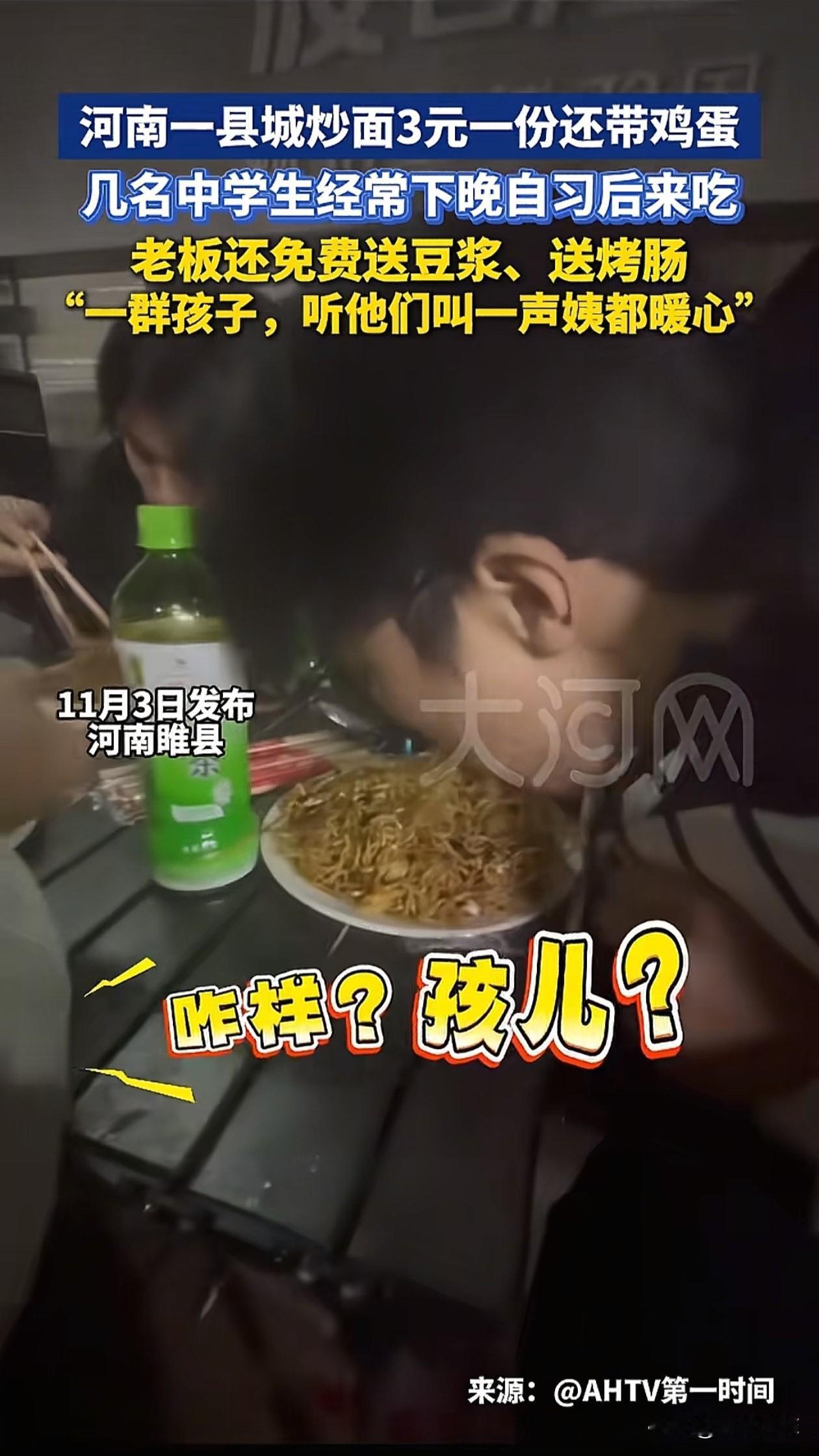 3块钱一份的炒面还带个鸡蛋!几名中学生下晚自习经常来吃,推主还送豆浆送烤肠。摊主:不是钱多钱少,听他们叫一句姨都暖心。 河南,女子在县城摆街头小摊,主打一份炒面,定价只要3元,而且每份都自带一个鸡蛋。 附近中学生下晚自习常来吃,女子知道孩子没多少零花钱,不光不涨价,还主动免费送豆浆,熟客孩子来多了,还会额外给烤肠。 女子说,小孩叫一声姨就暖心,不在乎钱赚得多少。 女子不靠这个赚大钱,而是真心体谅学生不易,她自己从2000年就做慈善,还常年无偿献血,本来就是个热心肠,摆摊也是凭良心做事。 大多数网友都夸女子是个良心老板,觉得物价飞涨的当下,这样的小摊太暖心了。 也有少数网友担心食品安全,但女子表示会保证食材新鲜,遵守卫生规范,而且炒面本身成本不高,低价不代表降低品质。 县城的食材成本低,女子因地制宜,走薄利多销路线,价格实惠,既贴合学生消费能力,又靠口碑拉来了回头客,是双赢。