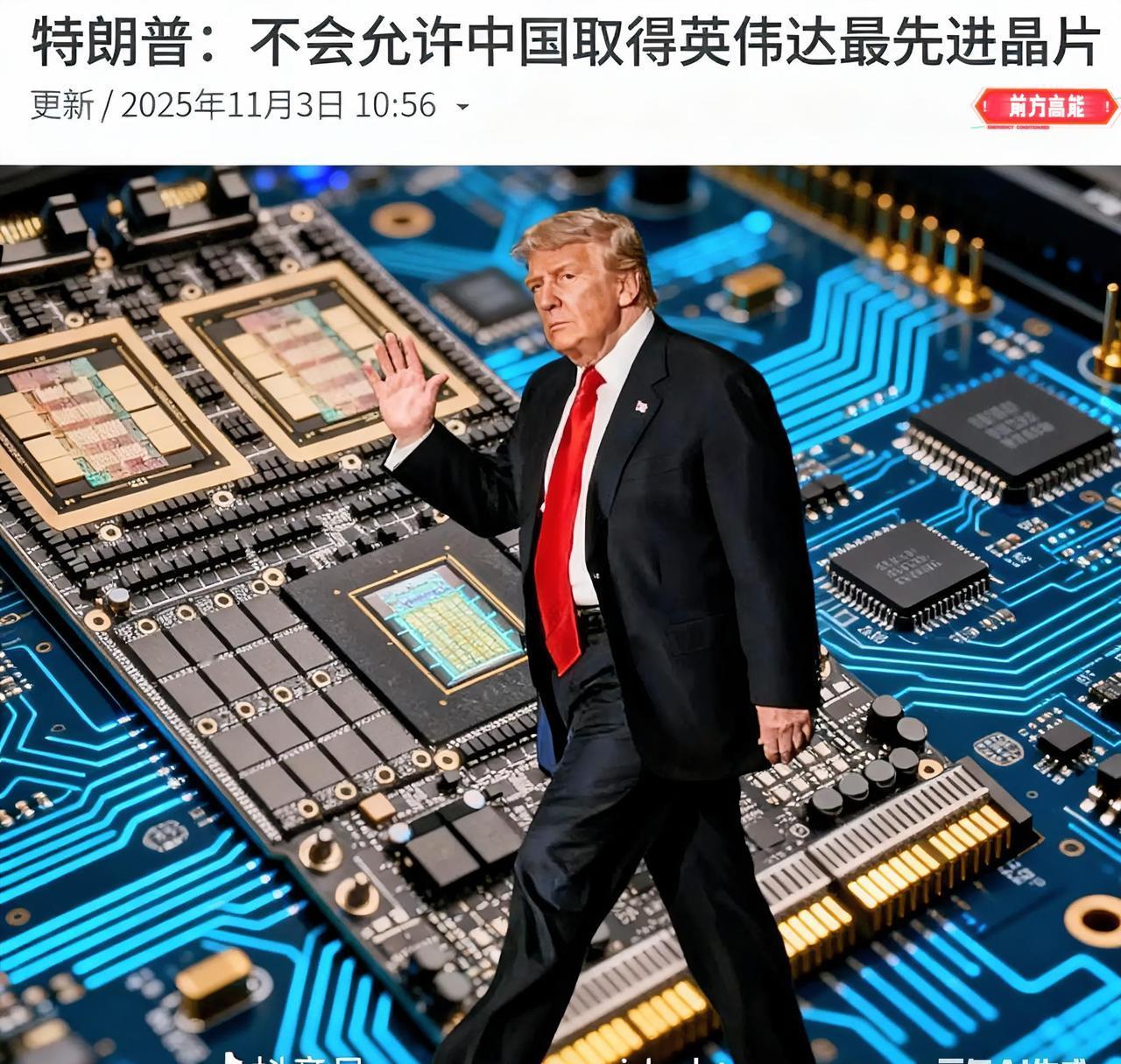 快讯!快讯! 特朗普确定了,这个问题中美没得谈,美国一步都不会让 2025年11月3日,美国总统特朗普在空军一号对记者称,英伟达的Blackwell先进人工智能(AI)芯片领先其他所有芯片10年,美国不会把新款Blackwell芯片提供给其他人,并称他定期与英伟达行政总裁黄仁勋会面。 这话听得人一愣。几天前黄仁勋还在公开呼吁放开管制,语气里满是焦急。这位CEO刚说过,英伟达在中方先进芯片市场份额从95%跌到了零。 特朗普说定期和黄仁勋见面,两人说法根本对不上。黄仁勋警告得直白,美国技术领先的根基可能被政策砸垮,全球半数AI研究者是华人。 Blackwell芯片确实有底气。2080亿个晶体管,能让大模型推理性能提升30倍,能耗还降25倍。再强的技术,也架不住市场丢了。 更讽刺的是,美国对中方说“不”,转头就计划给沙特供1.8万枚Blackwell,给阿联酋出口超百万块。这哪是技术保护,分明是挑着人封锁。 黄仁勋看得透亮。中方企业要的是顶尖技术,美国堵门后,本土芯片企业股价蹭蹭涨。这不是逼着别人另起炉灶吗? 之前拜登政府搞的管制框架,早被行业骂翻了。甲骨文说这政策能让美国丢80%的市场,真没夸张。 特朗普撤销了旧框架,却玩起更极端的单边封锁。他没算过,芯片产业靠全球市场反馈。丢了中方,就是丢了技术迭代的土壤。 黄仁勋那句“美国有可能落后于中方吗?答案是肯定的”,才该是清醒剂。靠堵不靠拼,再领先的技术也会被时间追上。 技术壁垒从来挡不住创新,只会倒逼突破。就像北方华创,被列入管制清单后直接说业务不受影响,核心零件早能自己造了 。 四大行业协会都站出来了,呼吁企业谨慎选美国芯片。大家都明白,美国芯片供应越来越没谱了 。 美国企业急得跳脚,政客却还在自说自话。这出戏着实让人看不懂。 各位读者你们怎么看?欢迎在评论区讨论。