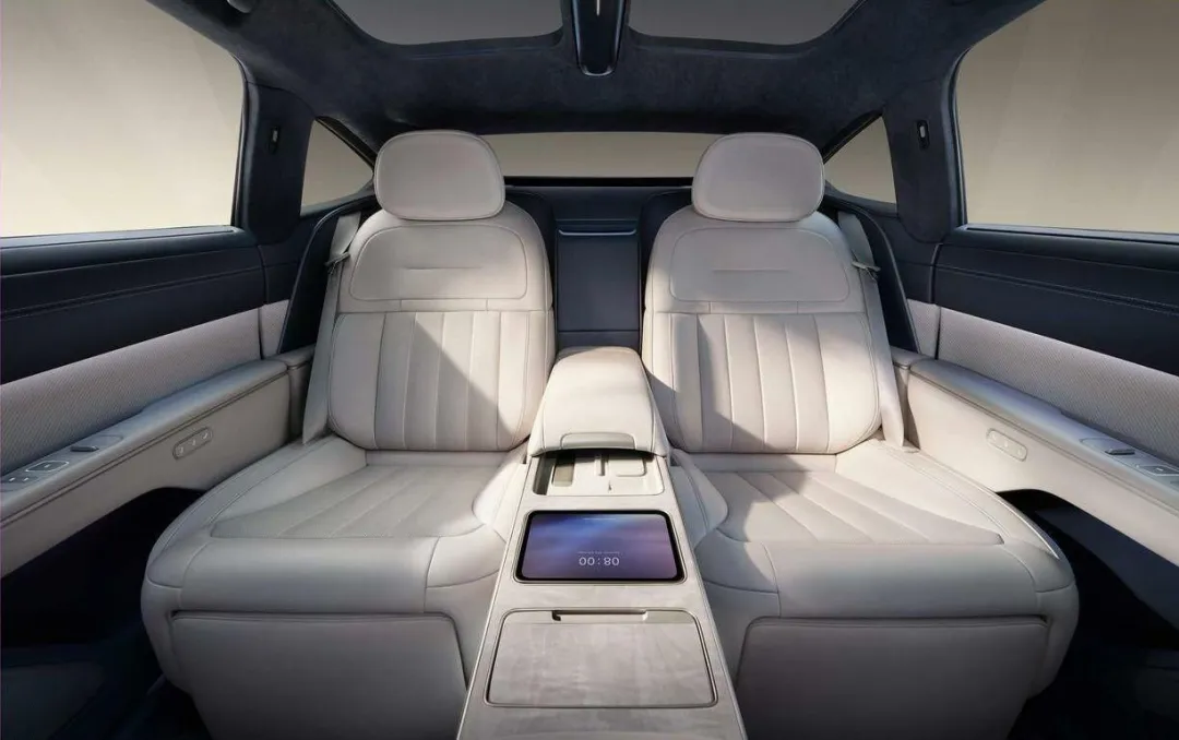 燃油车上的驱动主体是发动机和变速箱,但是增程式车型上,驱动主体是电机和电池,在这里增程器就是一个充电宝,在电量不足的情况下发电,再用电驱动车辆。S800的驱动部件是电机,增程版首发800V雪鹄增程系统,配备65度大电池,支持6C快充,从10%充至80%仅需10.5分钟。拥有超过80kW的发电功率,即使亏电状态下,150km/h的时速下,动力仍不衰减。