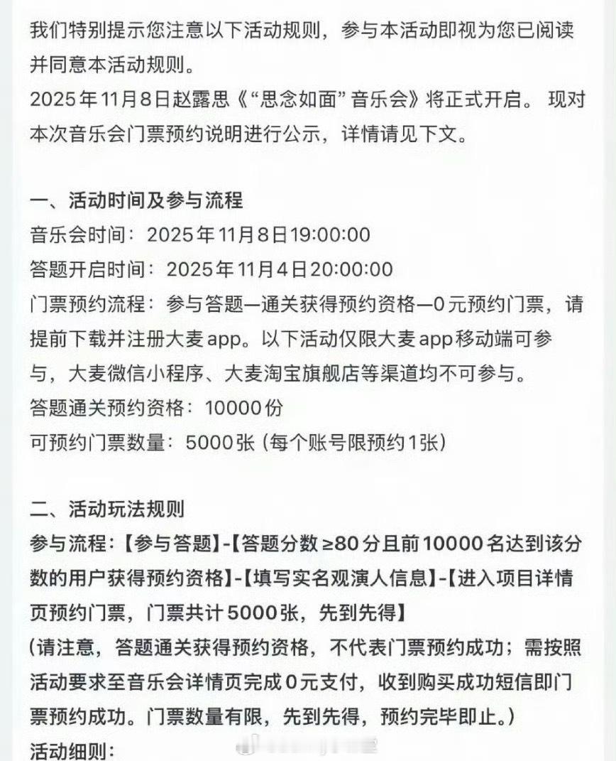 赵露思音乐会入场券通过答题通关、0元预约的形式发放!竟然是免费[哆啦A梦吃惊]