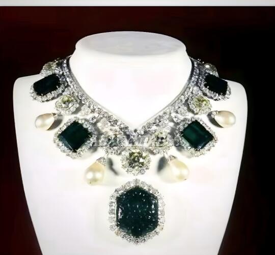 仅仅是王冠已经足够让世人惊叹伊朗王室的财力雄厚,巴列维国王对于自己王后的偏宠已经是展露无遗,谁能知道王后为了搭配王冠佩戴的项链同样还是稀世珍宝。