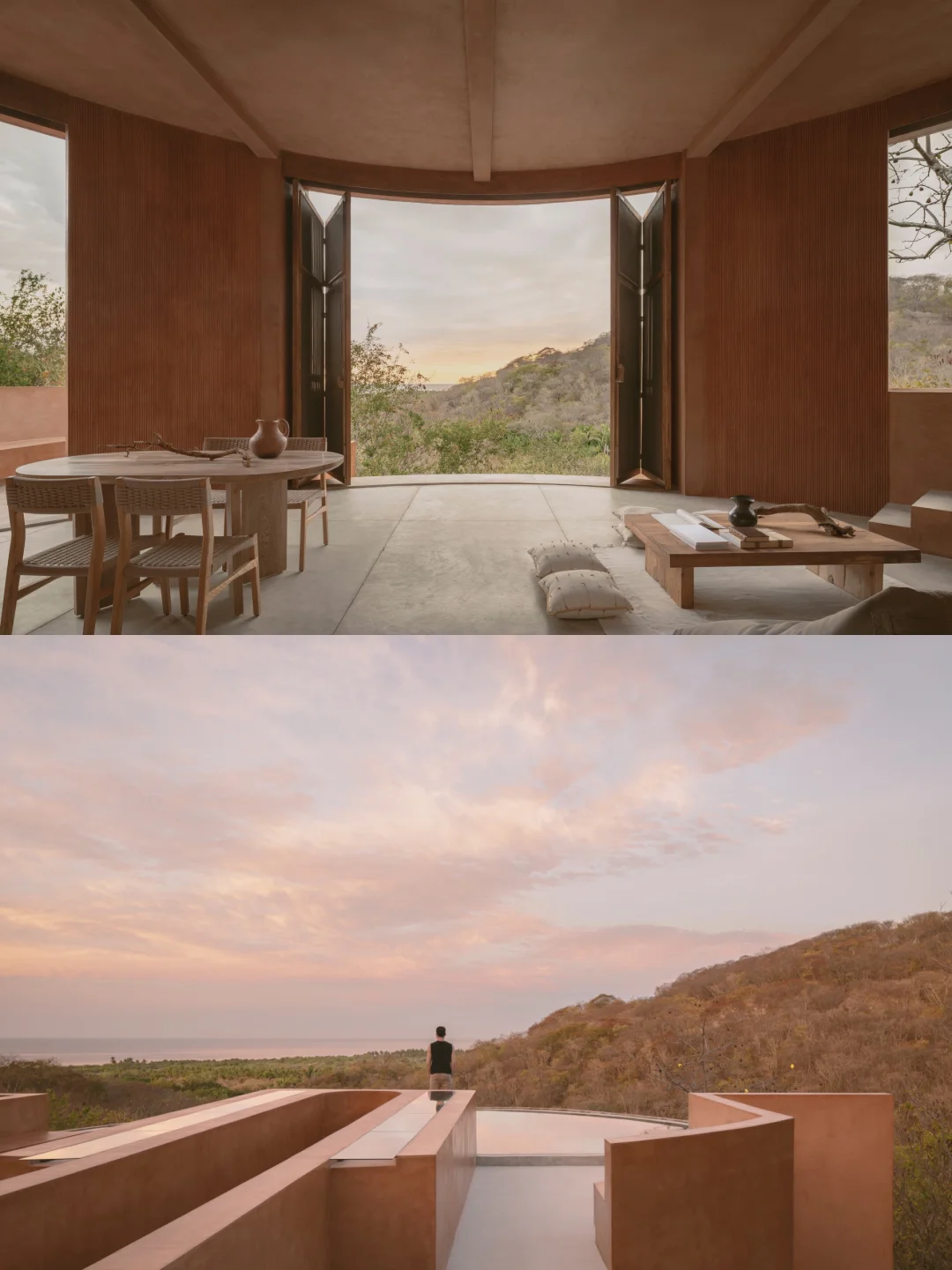 这座位于墨西哥Puerto Escondido的海边住宅,仿佛一只从岩石中缓缓爬出的甲壳动物,以壳为庇护、以水为镜,将海浪、夕阳、丛林与风,纳入生活的日常。