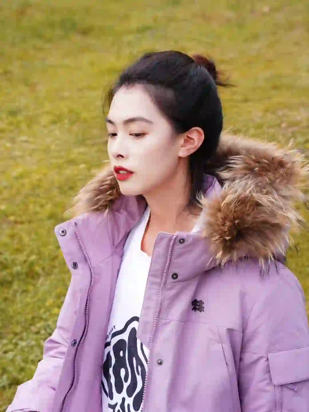浪漫的紫色好显白!!奶呼呼的好乖!!蓬松感也很好,穿在身上太舒服啦~
