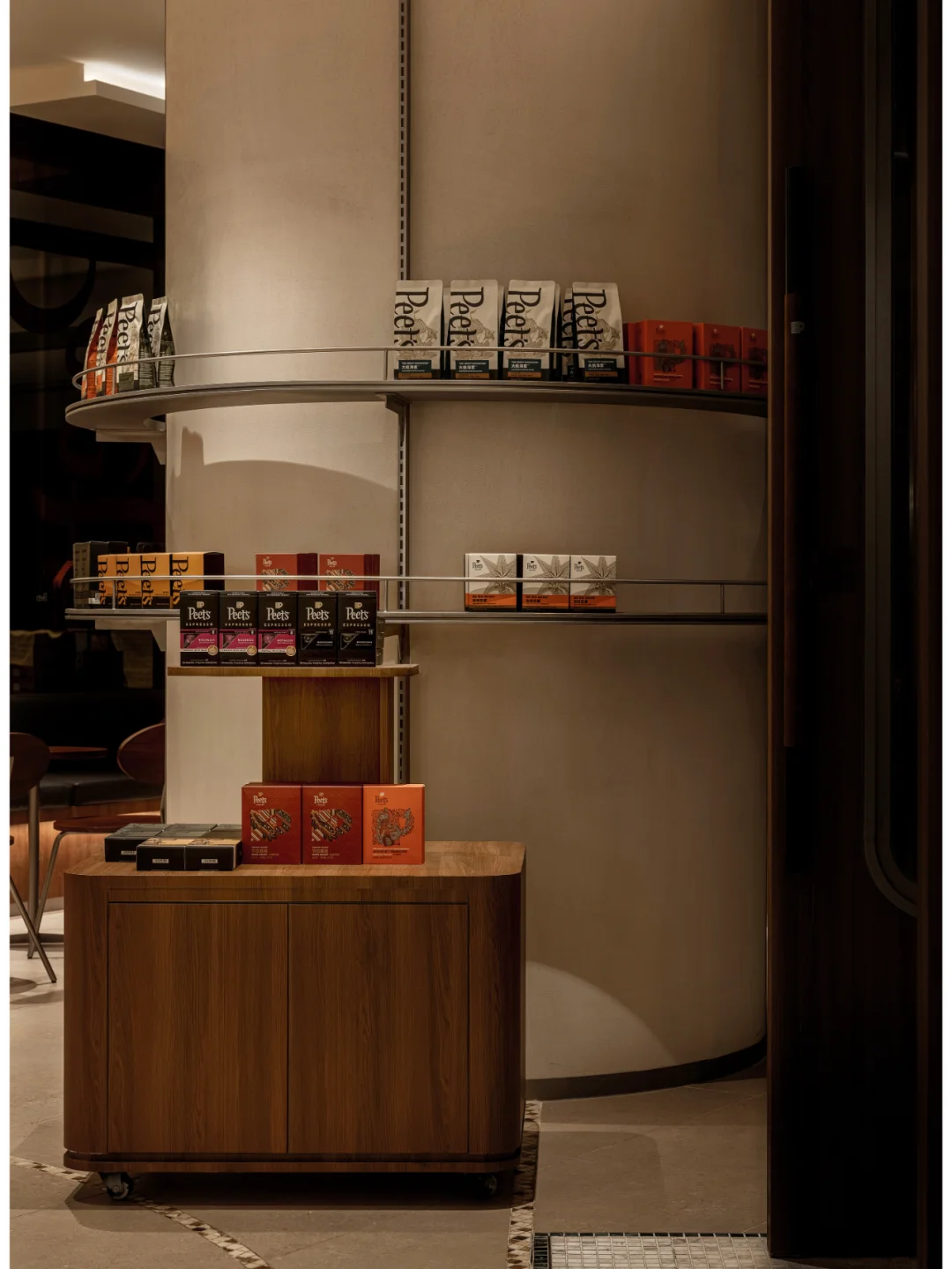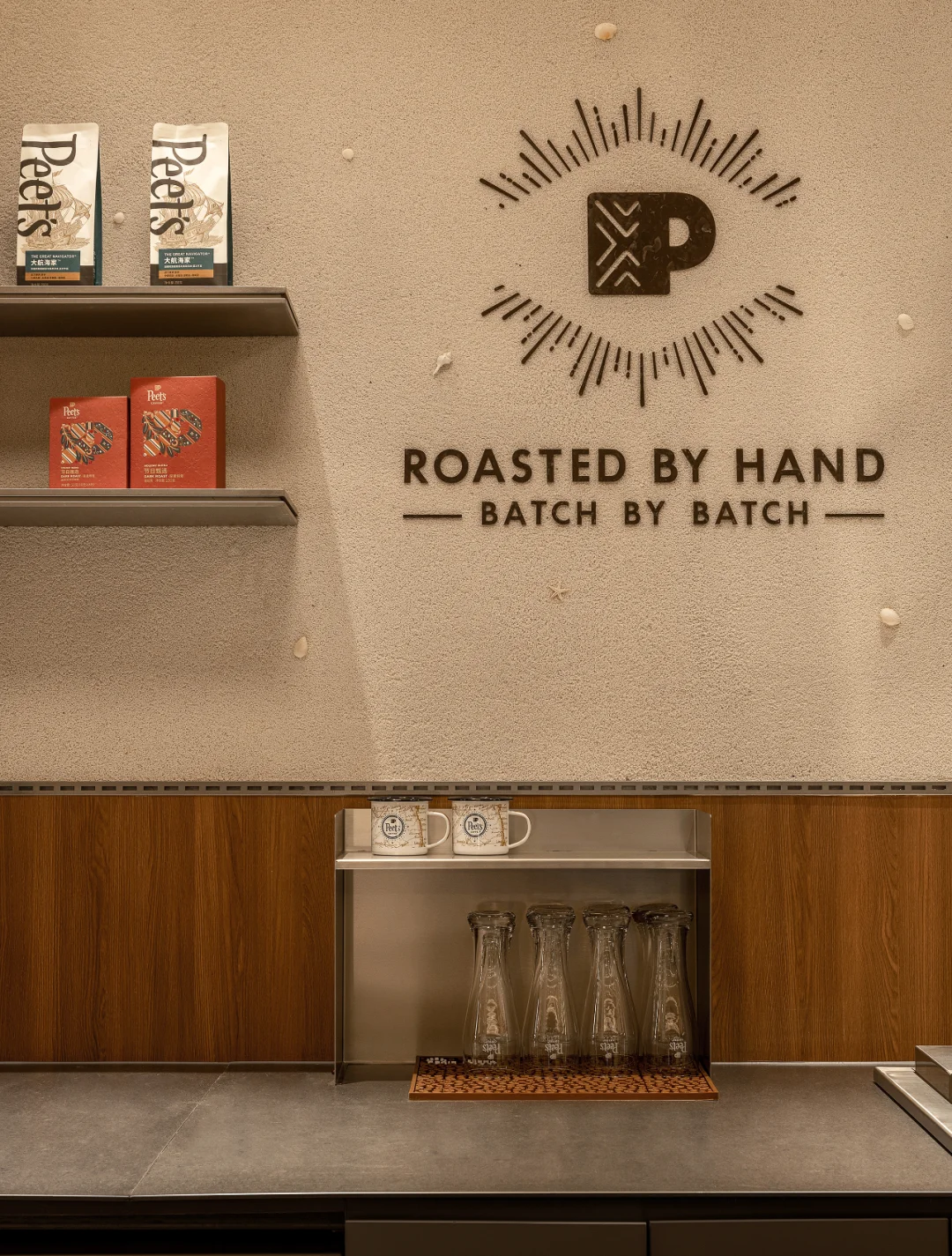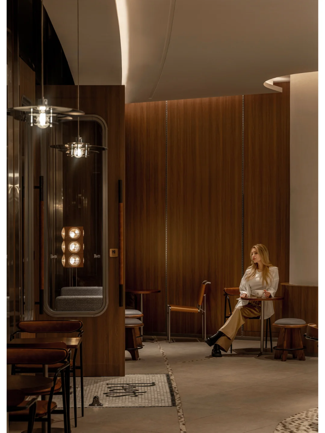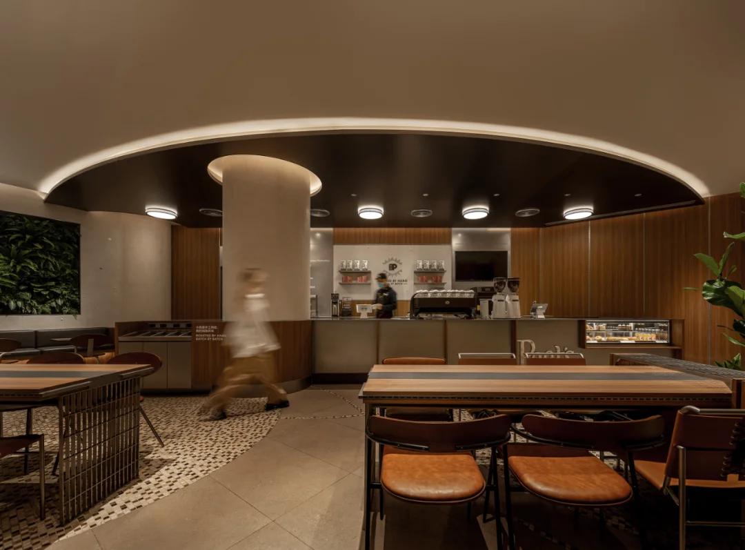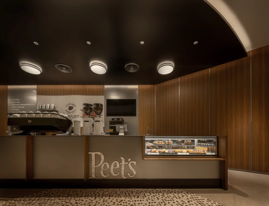 🟤 Peet’s Coffee 皮爷咖啡,被誉为“咖啡界的祖师爷”,以匠心精神坚守精品咖啡的初心。如今,品牌首登大连,落地恒隆广场 B1, 操刀设计,以海港文化为灵感,将城市记忆植入空间体验。 🟤 设计以大连港的工业与海洋文化为核心,将空间打造为一座微缩的城市记忆博物馆: 不锈钢支架—呼应北方工业基因,构建空间骨架 精巧吊灯—仿若船舶信号灯,光影流动间似能听见海潮声 水磨石地面—嵌碎贝壳 低调细腻,传递渤海湾的海洋印记 这些元素不仅是装饰,而是一次品牌与在地文化的深度融合,犹如 Alfred Peet 以欧洲匠艺革新美洲咖啡文化,我们也在这里完成了一次空间语言的重组。 🟤 贝壳解构 · 吧台叙事 胡桃木的温润与金属的冷峻交织,背景墙以米白色水洗石铺陈,点缀细碎贝壳,平衡质感冲突,让功能与美感并行不悖。 海岸文脉 · 留下足迹 皮质沙发的细微褶皱,水洗石墙面的天然肌理,仿佛诉说着海水侵蚀后的礁石记忆。这些“不完美”,恰是时间赋予空间的温度。 🟤 经典无需追逐潮流,空间即品牌。 - 设计保留混凝土的原始肌理,并嵌入会呼吸的海洋贝壳 - 采用美式复古深棕主调,以金属冷色作跳色平衡 - 经典胡桃木长桌,在共享基因中焕发新生 当夕阳透过船窗式玻璃隔断,光影浮动于地面,你会懂:这里不仅有咖啡,更承载着一座城市的海港记忆。 🟤 品牌:皮爷咖啡大连首店 设计: 笑脸蜘蛛|Spider Creative 摄影: 图派视觉 . 空间设计  室内设计  设计案例  商业空间  空间美学 设计灵感  咖啡厅设计高级感  大连探店  小众设计师品牌 艺术薯