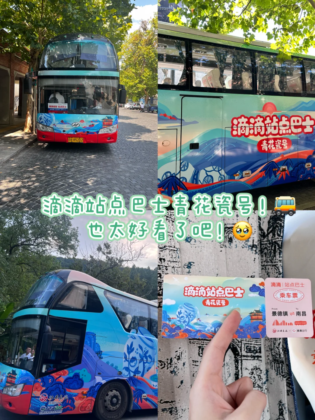 还坐了滴滴站点巴士青花瓷号大巴🚗,外身超级多当地的特色文化元素,绝美啊! 主要是从南昌过去只需要几十块???🥹