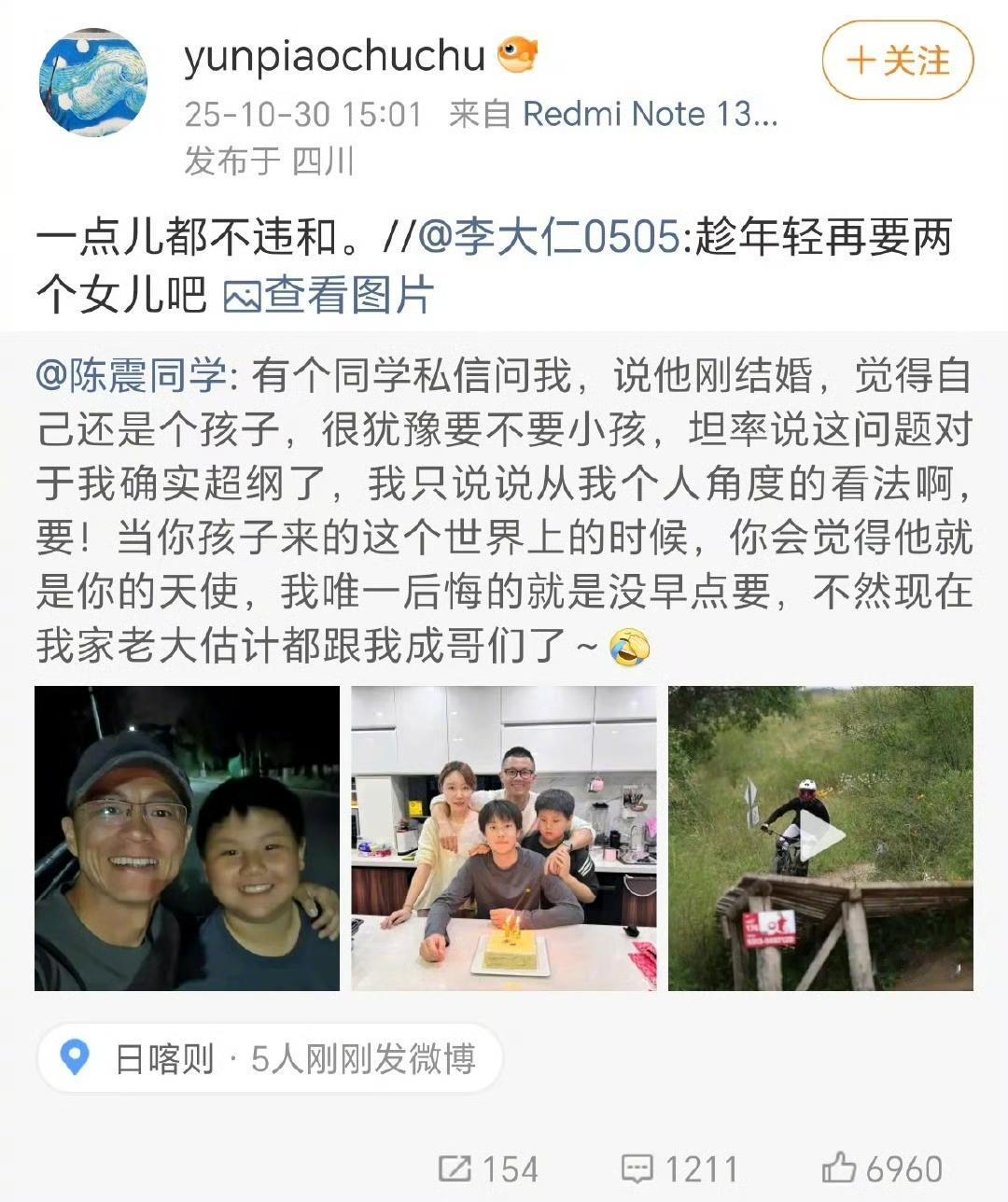 网友问陈震:趁年轻再要两个女儿吧! 陈震:毫无违和感[捂脸][捂脸][捂脸] 真别说,现在的ai功能就是强大,只要跟他说一些要求,就能给你p出来一些东西。 确实还是比较像的,现在的ai图有时候还真的不太容易分得清楚。各位是怎么看的?欢迎评论区留言。