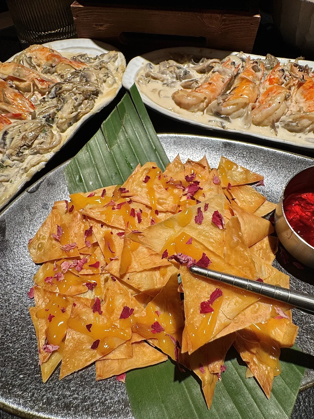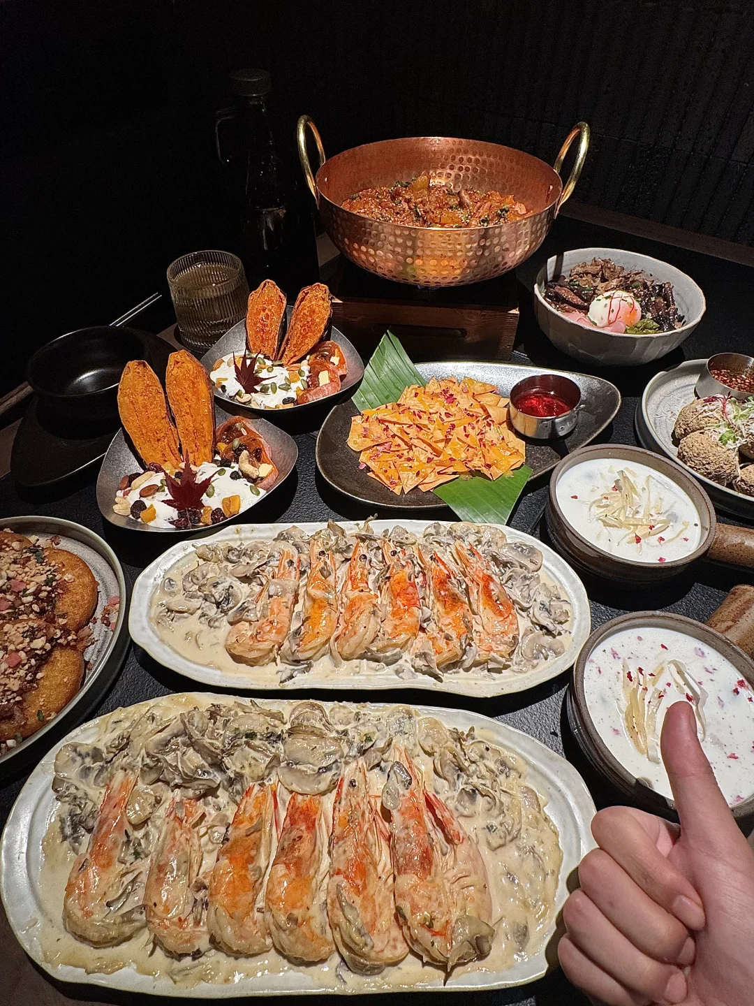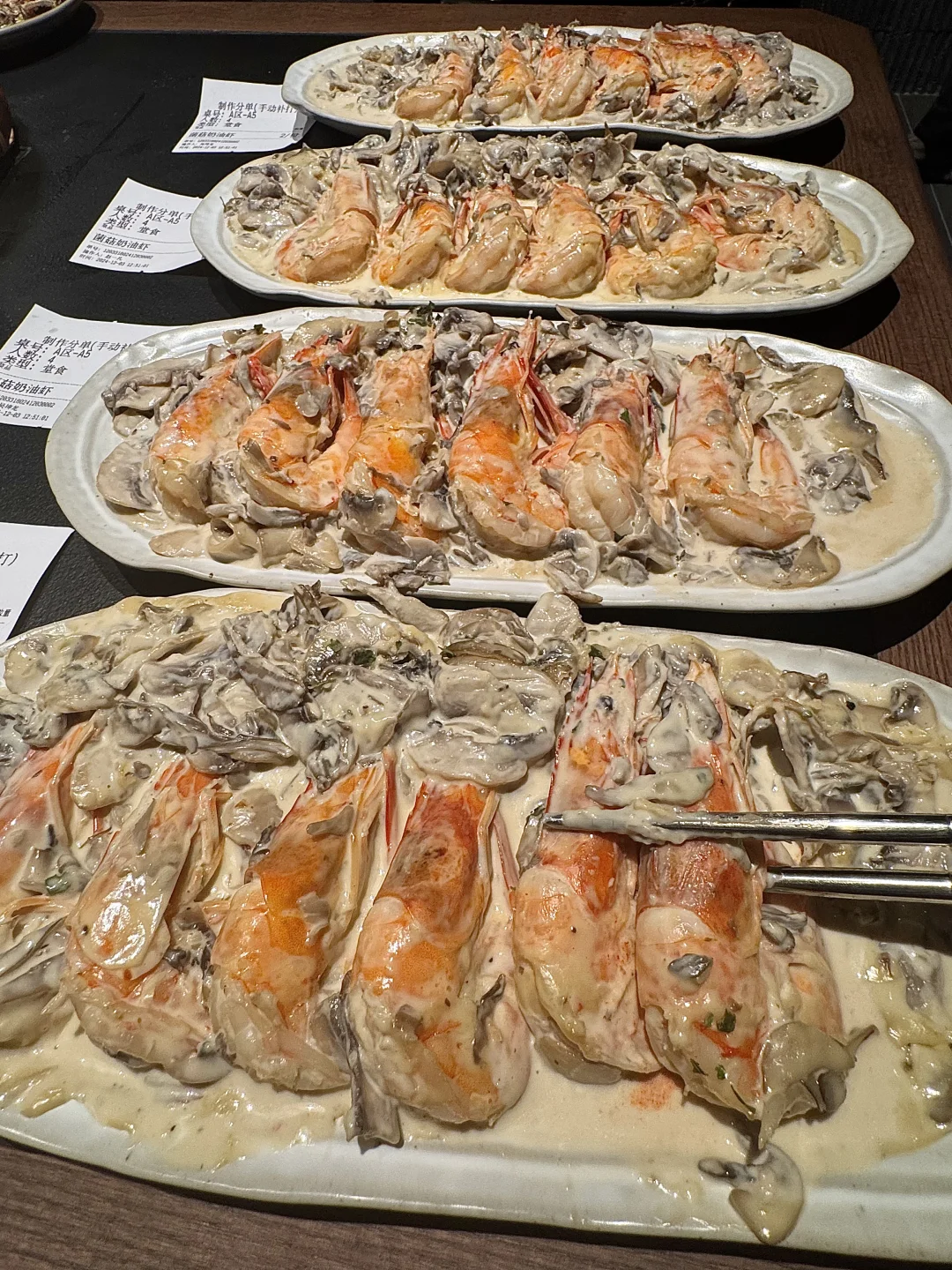 我心中的云贵川菜top![色色R][色色R]菌菇奶油虾,虾是开过背的好嫩!!每一颗都裹满奶油,好浓郁!真的能吃一整盘~ 空气黑豆丸子,炸过的好好吃,里面嫩嫩的!碳烤猪颈肉撒撇米线也是清清爽爽~