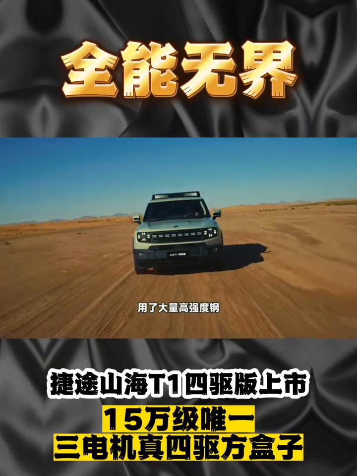 全能无界,捷途山海T1四驱版上市,15万级唯一三电机真四驱方盒子。 捷途山海T1
