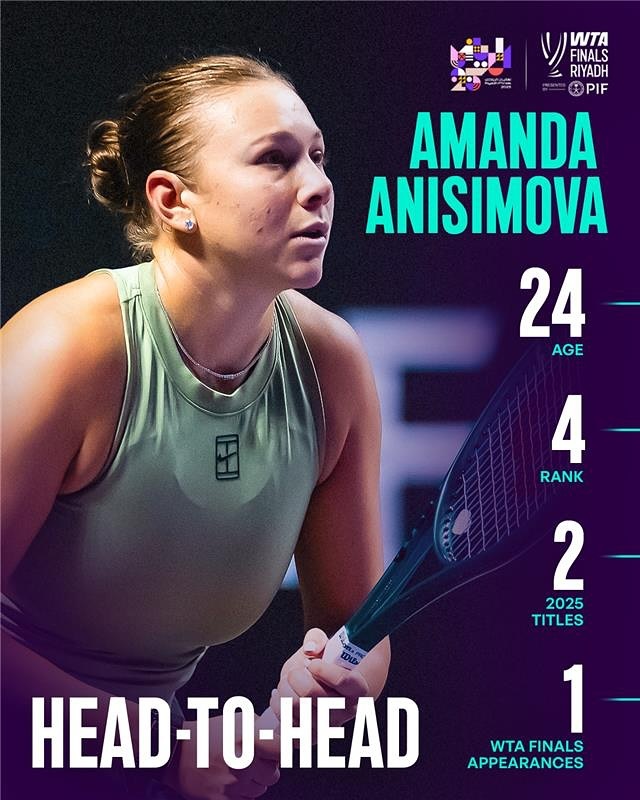 阿尼西莫娃取得年终首胜✅利雅得WTA年终总决赛 单打小威廉姆斯组美国德比,4号种