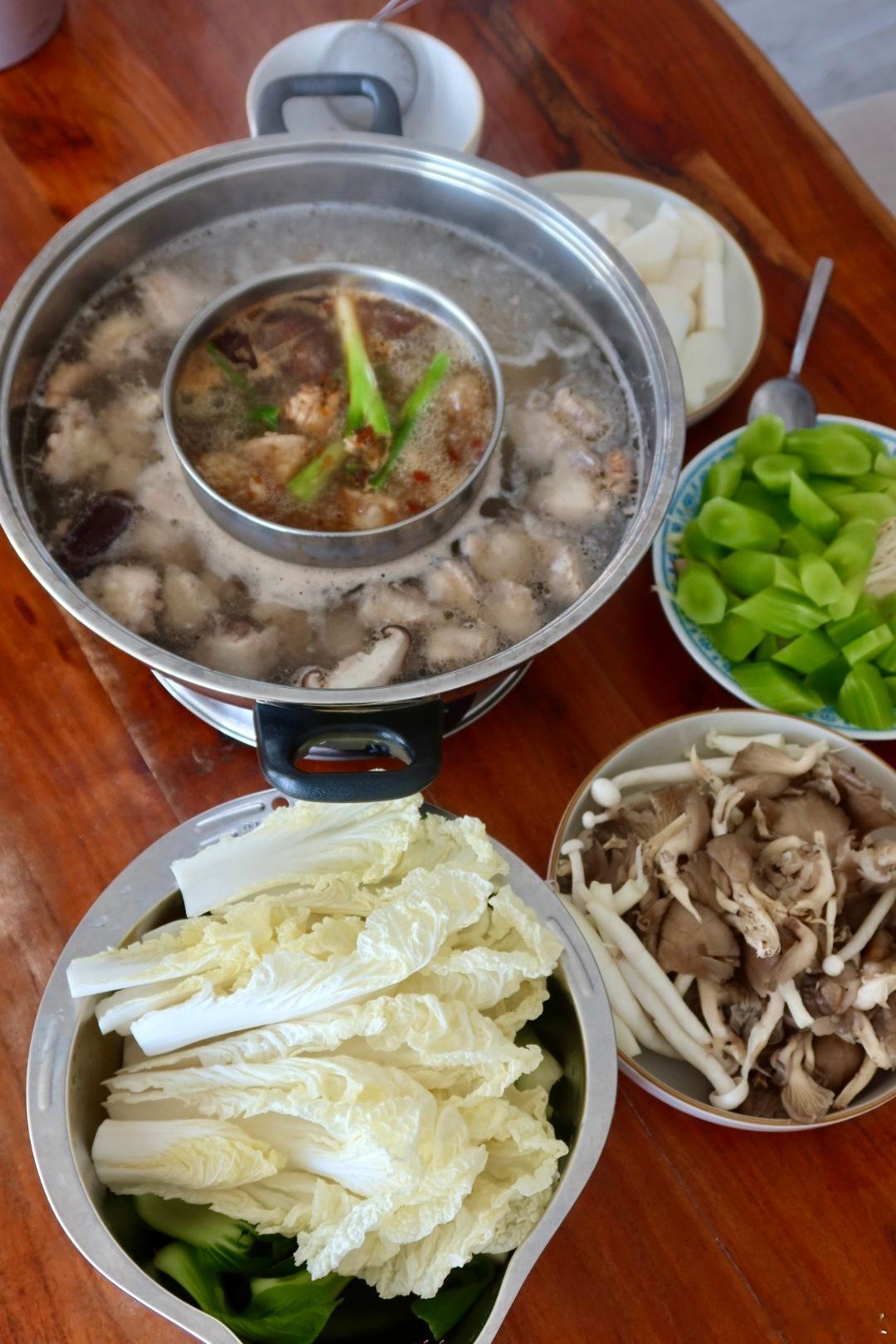 午餐:椰子鸡火锅🍲 锅底倒了两大盒Costco的无添加纯椰子水🥥、加了一点猴父子买的冷冻椰肉泥🥥、几片姜,中间小辣锅放了南食召的牛油锅底。在猴父子让师傅把鸡翅鸡腿剁成小块,一批一批鸡块跳椰子水里,又嫩又清甜。开始抗炎饮食之后味蕾渐渐从重油重盐重辣中恢复,越来越能欣赏稍微简单烹饪的食物