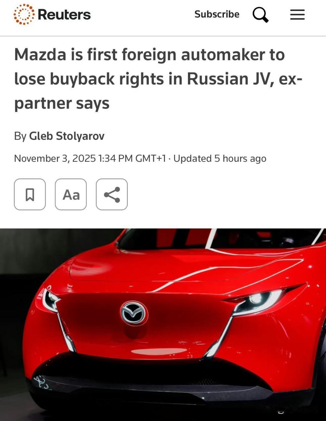 西方车企这次倒血霉了,真的是活该。 马自达已失去回购权,成为第一家“回不去”的西方车企;雷诺、现代等仍握有期权,但能否兑现取决于2025-2026年政治风向与中方接盘意愿。 俄境内原外资工厂正被中俄联合运营快速“改装换标”,西方品牌即便未来获准回归,也将面对一条几乎被重新洗牌的供应链。 一、象征性出售 + 回购条款:通用模板 2022年俄乌冲突后,马自达、雷诺、梅赛德斯-奔驰、现代等相继以“1欧元/1卢布/1万美元”的象征价格把工厂股权卖给俄方,并约定3-6年内可回购。 - 马自达:50%股权卖给索勒斯(Sollers),回购期3年,2025年11月到期未行使,正式失去回购权。 - 雷诺:将AvtoVAZ 68%股权转给俄政府,保留6年内回购选项,目前仍在窗口期。 - 现代:两座圣彼得堡工厂以10,000卢布(≈170美元)卖给Art-Finance,回购期权至2025年12月,目前尚未决定。 二、回购窗口“倒计时” - 雷诺:若想回购,需补偿AvtoVAZ约112.5亿卢布(约12亿美元)的2022-2024新增投资,否则俄方可拒绝。 - 现代:已重新注册品牌名,被解读为“返场”前奏,但政治风险与西方制裁仍未解除。 三、工厂现状:中俄联合运营 - 原马自达符拉迪沃斯托克厂:2023年起转产索勒斯品牌客车,无马自达技术输入。 - 原日产圣彼得堡厂:现由中央汽车与发动机研究所运营,生产“莫斯科人”品牌车型,技术来源为中国江淮。 - 原雷诺莫斯科厂:挂牌“莫斯科人”,实际使用中国江淮、一汽平台,俄中双方共管生产线。 - 原大众/现代工厂:被Art-Finance并入AGR集团,同样引入中国零部件,按CKD/SKD方式组装。 四、市场格局:中资占九成销售收益 - 2025年1月中国品牌占俄轻型车销量62.4%,俄最大车企AvtoVAZ数据显示“90%销售收益落入中国车企口袋”。 - 若雷诺、现代2026年行使回购,需与已深度本地化的中国供应链共存,品牌溢价与成本优势均面临挑战。 五、展望:西方品牌“回得去吗?” - 政治前提:欧盟对俄制裁未解除,法、韩政府仍支持制裁,企业层面回购需等待外交解冻信号。 - 经济账:回购后需再投数亿美元重建供应链、恢复西方零部件进口,而俄官方已提高报废税、限制平行进口,返场成本远高于“象征价格”。 - 竞争环境:中国车企已锁定渠道与零部件配套,西方品牌即便回归,也将面对“中俄联合生产线”+“中国供应链”的混合竞争对手。 马自达失去回购权,标志“象征性出售+回购”模式首次破裂;雷诺、现代等虽仍握期权,但窗口即将关闭——目前看来,停战遥遥无期,即便停战,西方政府对俄罗斯的制裁也不可能很快结束,因此在约定日期内,西方车企不可能回到俄罗斯。 就是退一万步来说,如果回来会如何? 你不在,厂子和工人都要吃饭,不可能停工。 几年来,俄境内原外资工厂正快速“中俄联合化”,西方车企若未来获准回归,将不得不与已深度本地化的中国供应链共处同一屋檐——不再是简单的“买回工厂”,而是要投掷巨资,买回一条被重新洗牌的产业链。