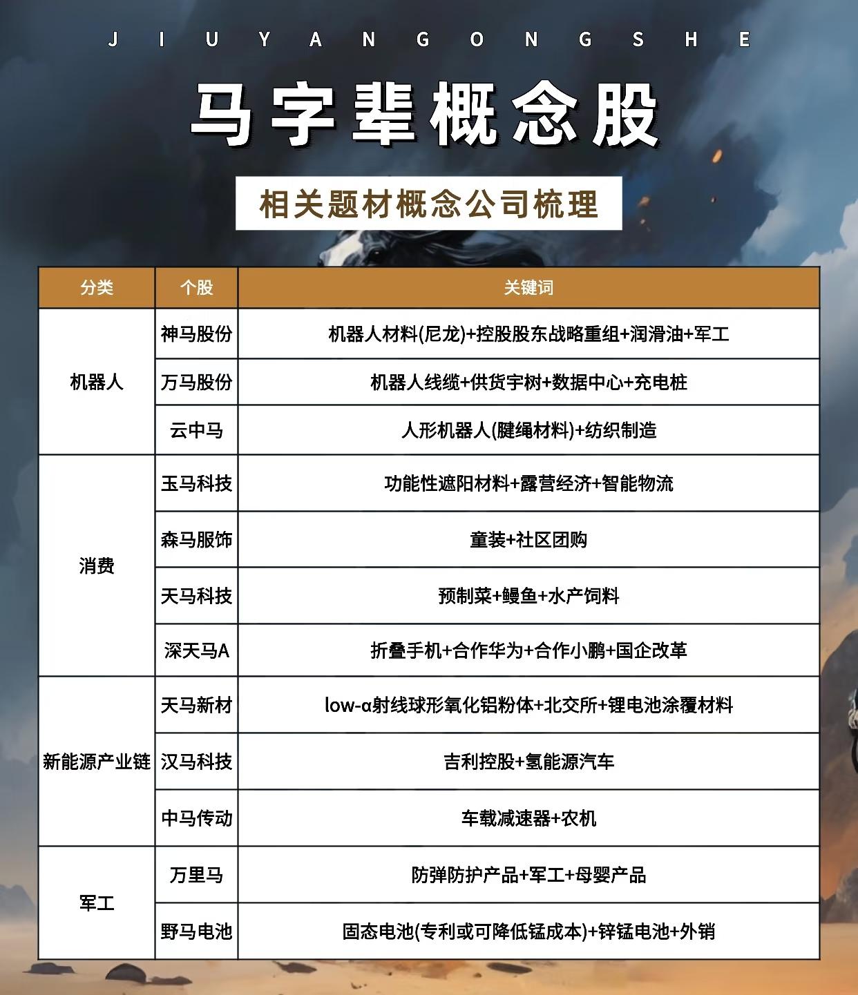 以下是对“马字辈概念股”相关题材概念公司的综合梳理总结: 一、总体概况 “马