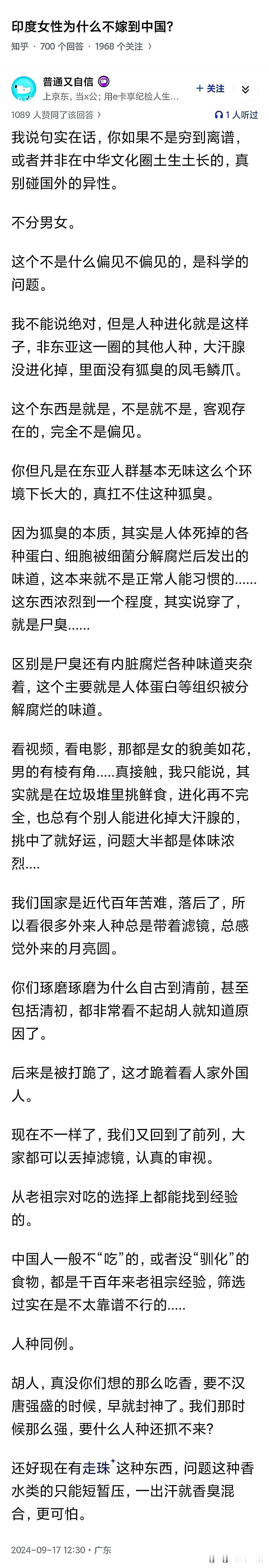 中国男人为啥不娶印度女人? 这得是什么样的脑回路,才会问出这样的问题?要知道中国男人有一条亘古不变的审美标准,那就是娶的媳妇,必须要白,也就是皮肤要白,一白遮千丑就是这么来的。 印度女人大多皮肤黝黑,甚至是棕色皮肤,请问哪个中国男人会喜欢?除非是印度高种姓的白人后代,那可能会选择的。但是这样的高种姓白女,一般是不外嫁。印度东北六邦是黄种人,但是咱们这边一般人过不去。 实话实说,中国男人娶的基本上是皮肤较白区域的女孩,在非洲工作的个别男人,因为没机会,个别人娶了黑人女孩做妻子,那真的少见。 中国男人其实挺挑剔的,可不是什么女孩都娶的,至少皮肤白才行呀。这是数万年进化来的本能。博主作为男人,娶的媳妇挺白的,当时就认一条,白一点的媳妇,才能守护一辈子。 如果娶了皮肤黑漆漆的印度或者非洲媳妇的话,请问谁甘心?反正博主活了三十多年,没听说哪个中国男人喜欢皮肤黑的女孩。 在娶老婆这个择偶标准上。九成九的中国男人,还是选择以白为美,个别人喜欢特例,那也是特例而已。