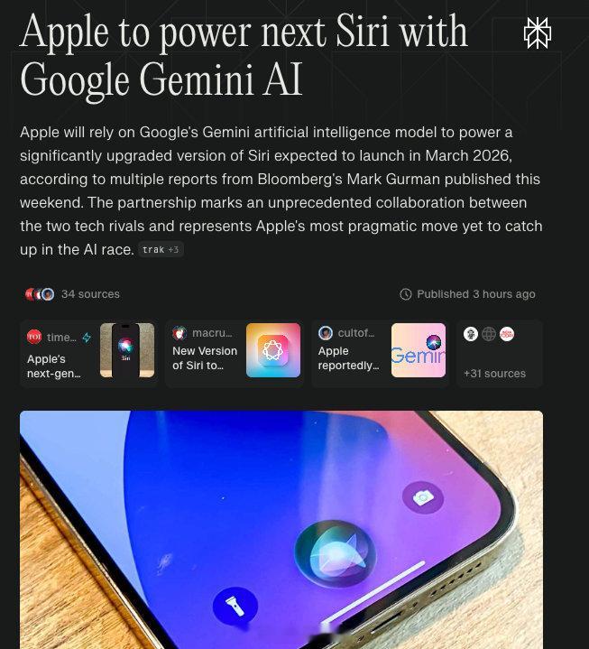 据彭博社报道,苹果公司将使用谷歌的 Gemini AI 模型来驱动下一版本 Siri,预计将于 2026 年 3 月推出。