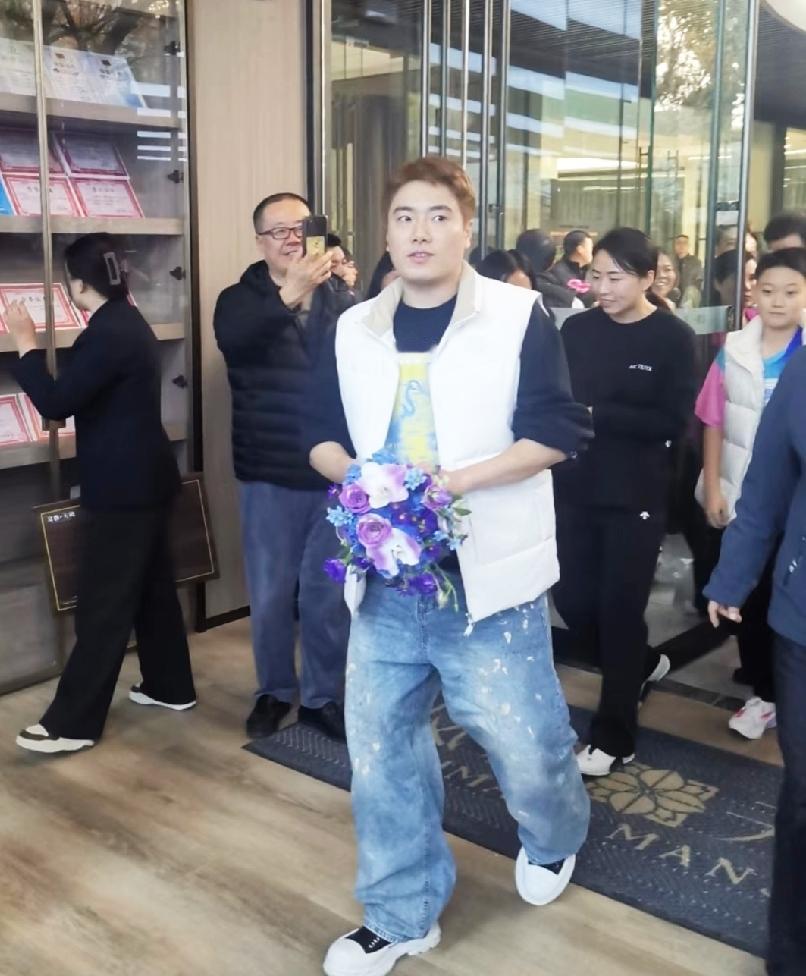 梁靖崑呀梁靖崑, 你果然与众不同, 别人都是塞花塞礼物, 却给你塞个孩子。 昨天梁靖崑去参加活动, 甜甜这是染发了, 这发色真好看, 这一身休闲装太帅了。 梁靖崑刚刚签完字, 突然有个人把一个孩子塞到他怀里。 见过塞花塞礼物的, 真没见过塞孩子的。 梁靖崑抱过孩子, 两人还对视了一眼。 这是确定过眼神, 你不是我要找到那个人呀[捂脸][捂脸] 这是世界冠军抱过的孩子, 以后可以显摆一辈子了, 也沾沾王爷的好运。 (图片源自于网络)