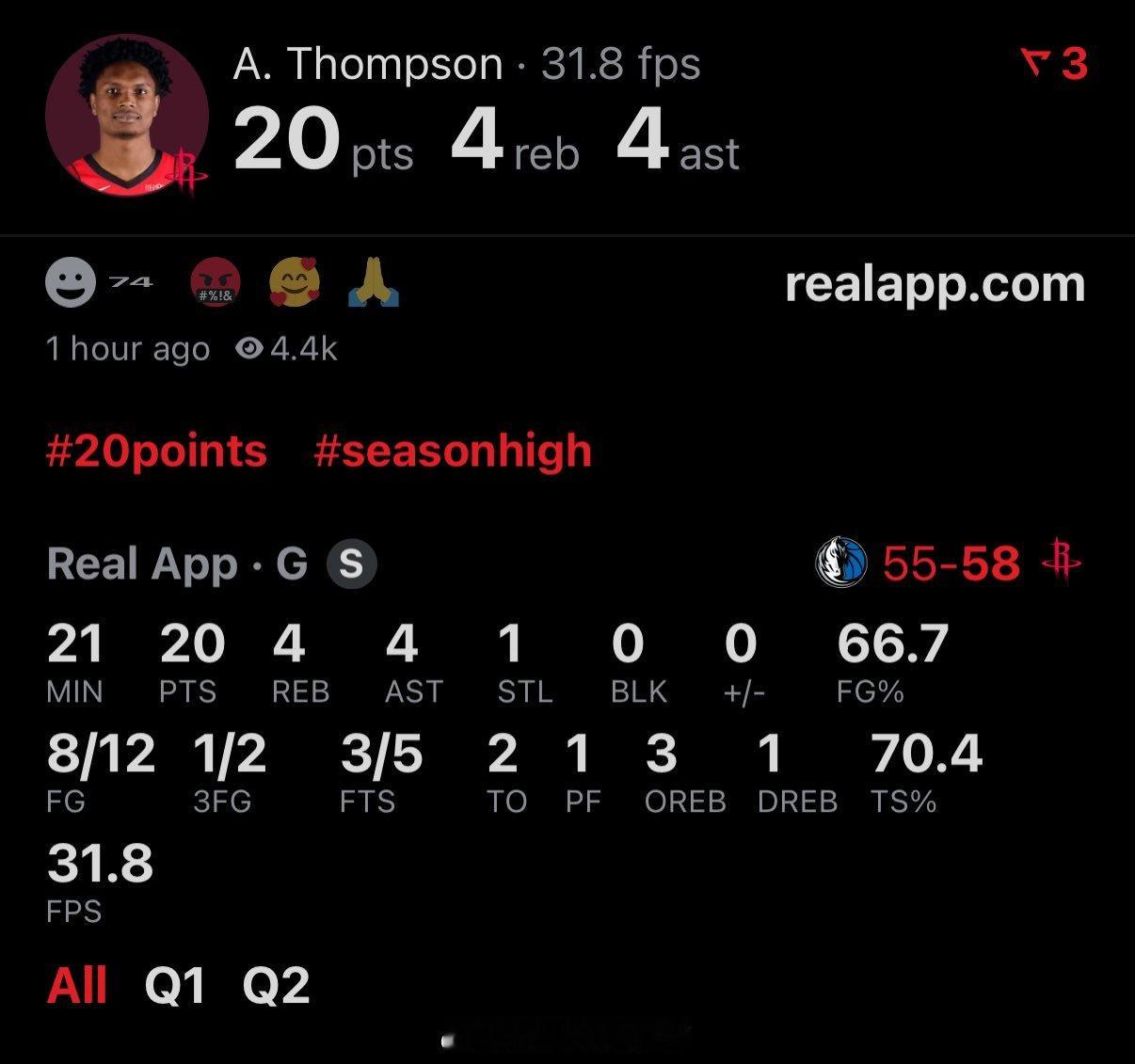 阿门半场20分4篮板4助攻1抢断,你们有什么想说的?阿门汤普森休斯顿火箭独行侠v