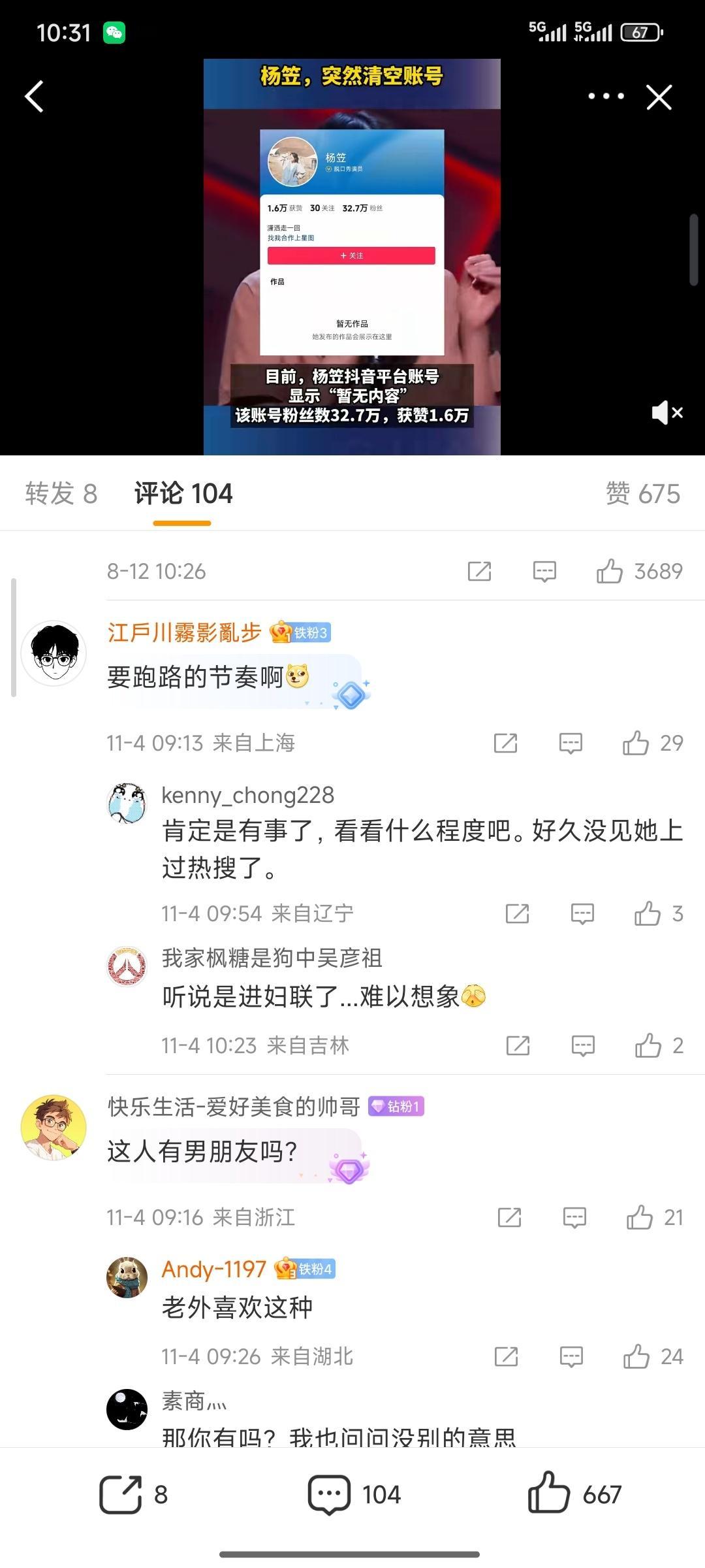 杨笠清空抖音男的好关心杨笠,有这么关心自己爹吗[doge]